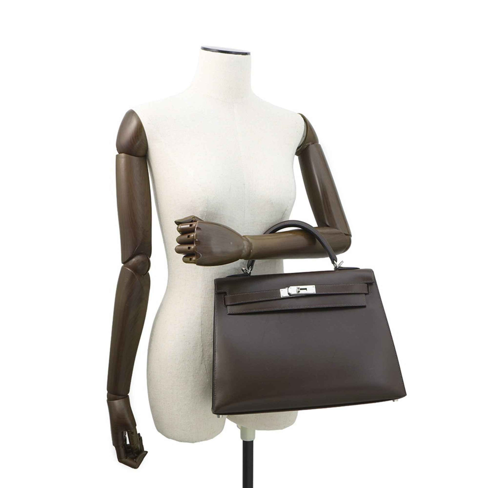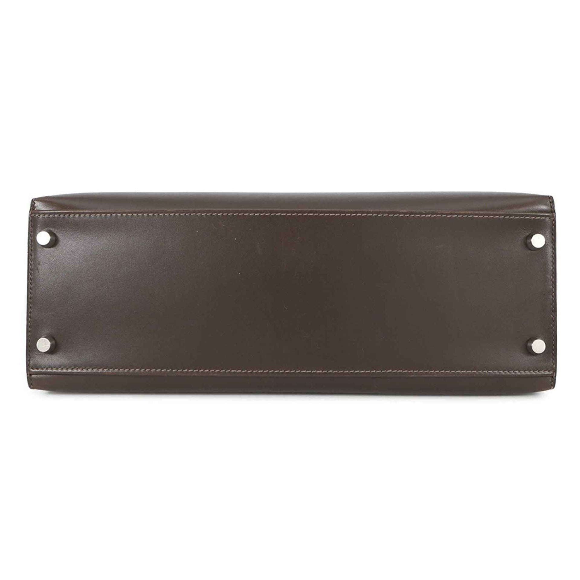 Hermes Hermès Kelly 32 Handbag, Outside Stitching, Chocolate/Box Calf Leather, K Stamp, 2-Way Shoulder Bag