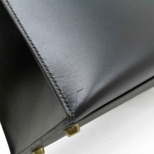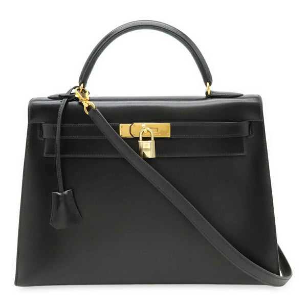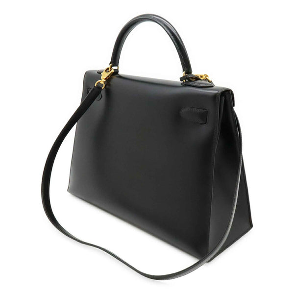 HERMES Kelly 32 Handbag/Shoulder Bag, Outer Stitching, Box Calf Leather, Black, V Stamp