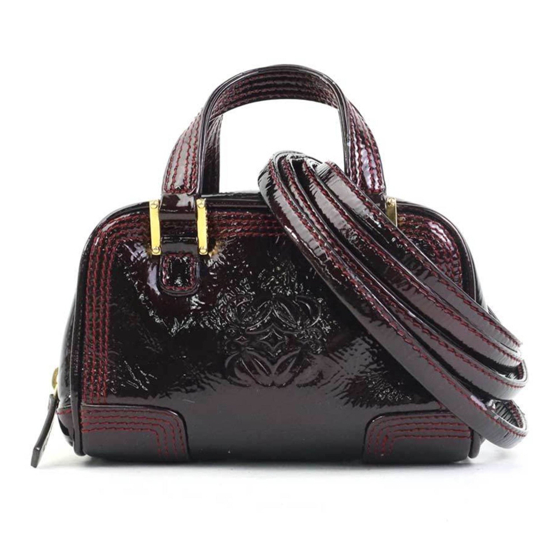 LOEWE Amazona Micro Mini Shoulder Bag, Patent Leather, Burgundy, Gold, Women\'s, e60955g