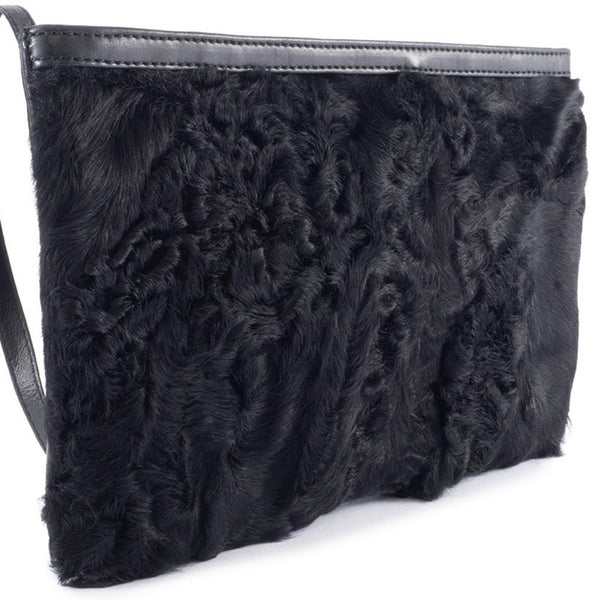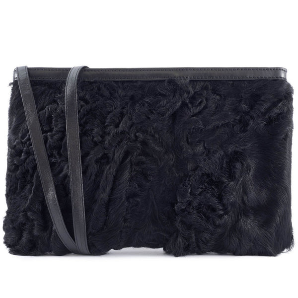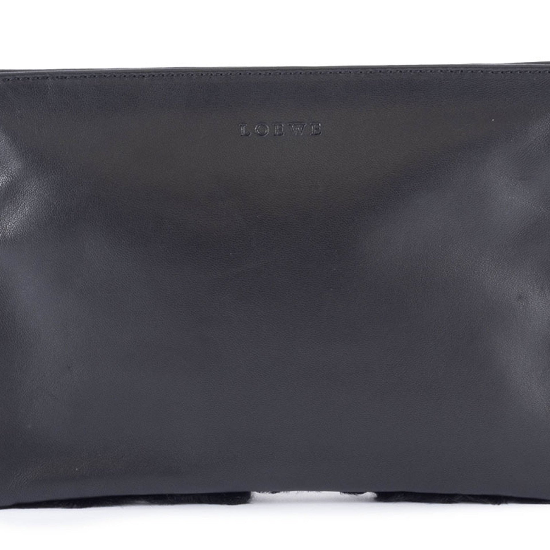 LOEWE fur shoulder bag, and leather, black, women\'s lamb sacoche pochette.