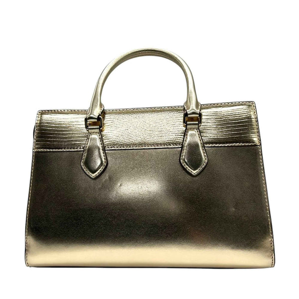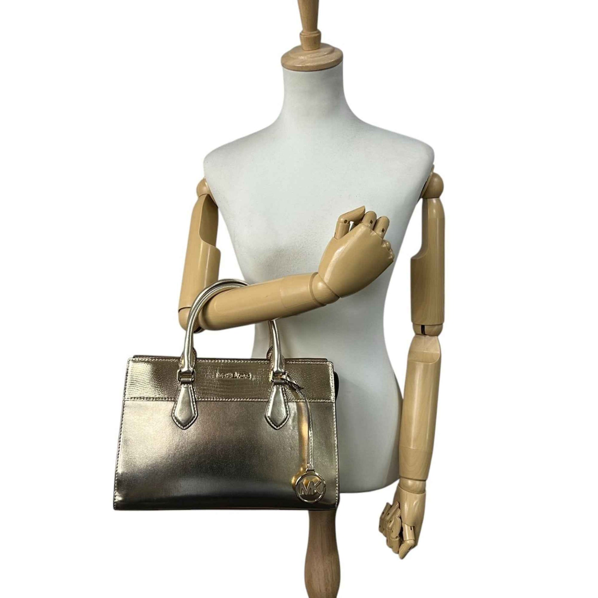 Michael Kors 2-way handbag/shoulder bag in gold embossed leather with MK logo charm. Women\'s.