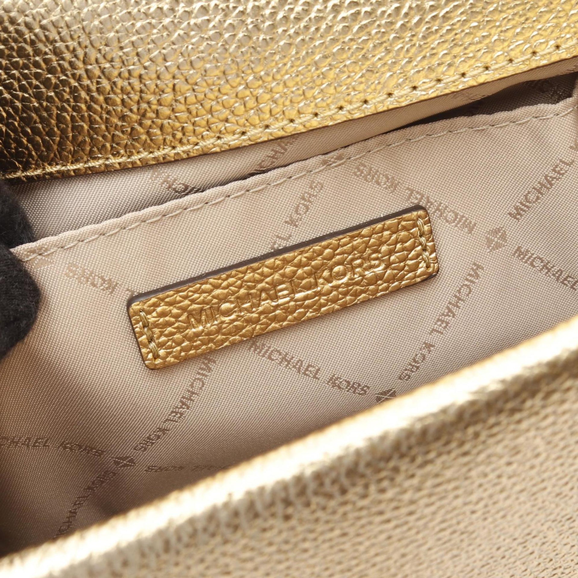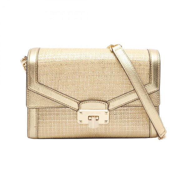 Michael Kors KINSLEY MD Shoulder Bag, Leather and Fabric, Women\'s, Gold