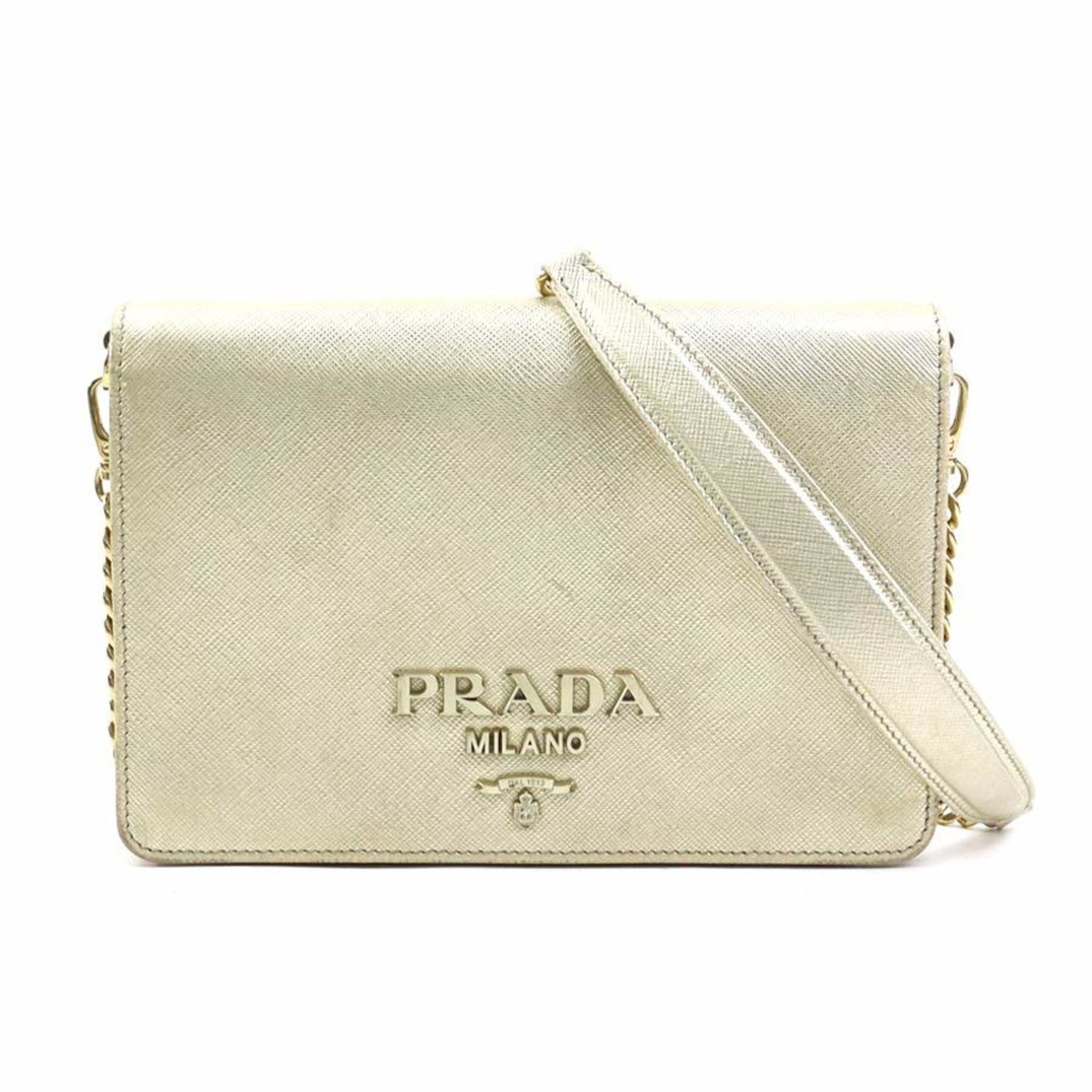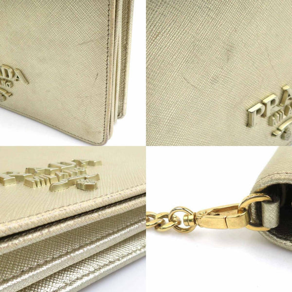 Prada Shoulder Bag with Chain Wallet, Leather, Metal, and Gold, Women\'s, e61055a