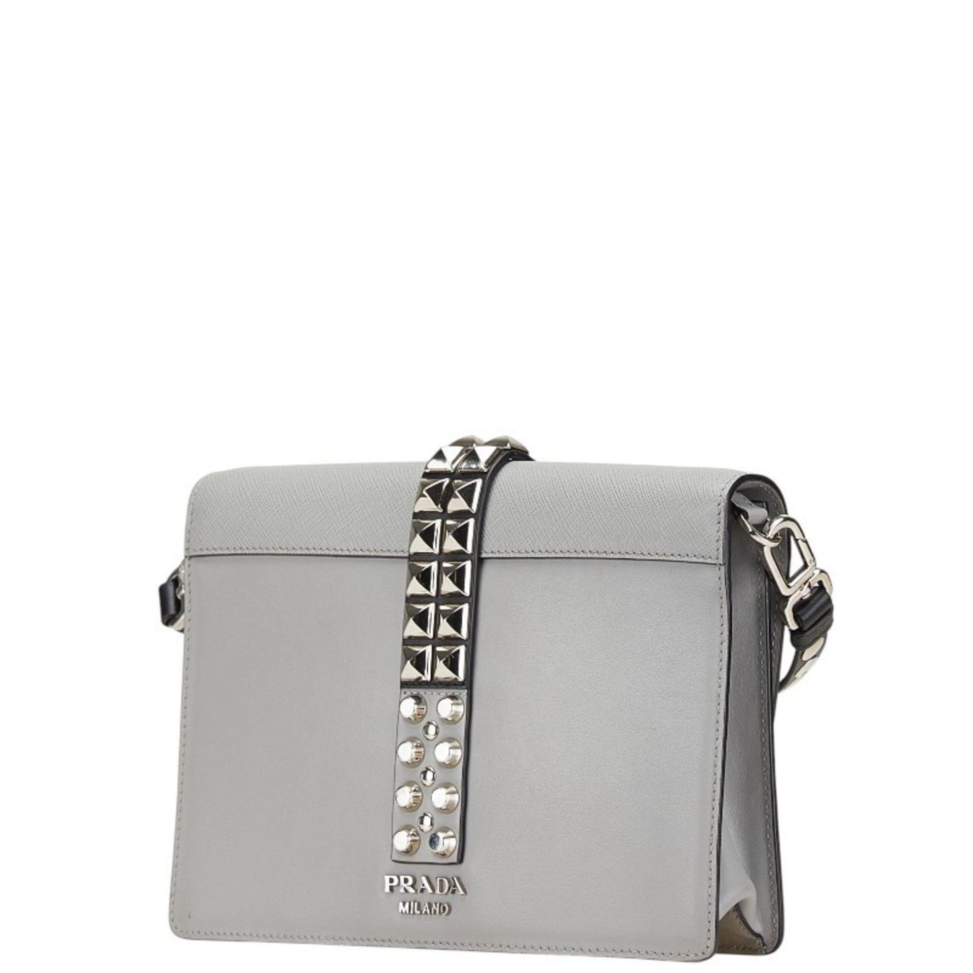 Prada Studded Crossbody Shoulder Bag in Gray Leather for Women