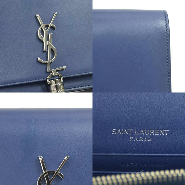 Saint Laurent shoulder bag with chain wallet in leather and metal, navy silver, women\'s, e60975a
