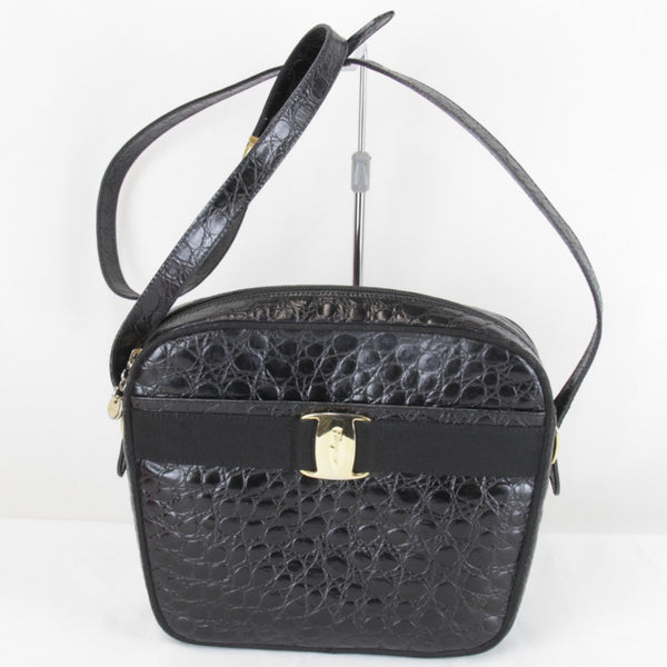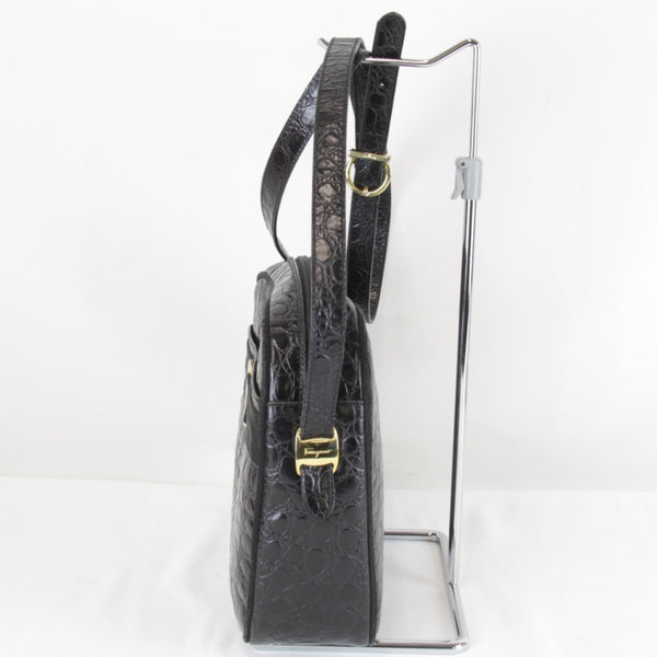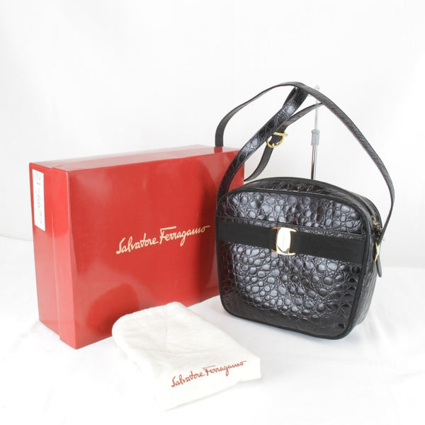 Salvatore Ferragamo Embossed Leather Shoulder Bag, Black, Women\'s
