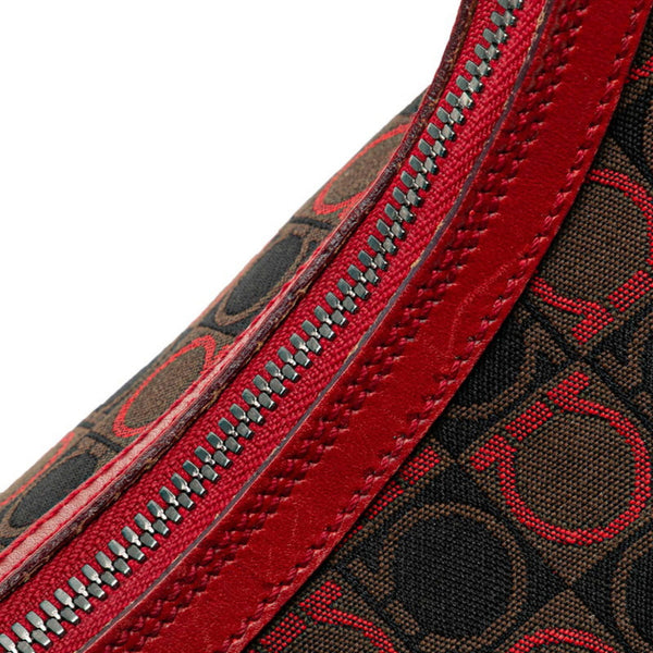 Salvatore Ferragamo Gancini One-Shoulder Bag in Black and Red Canvas Leather for Women