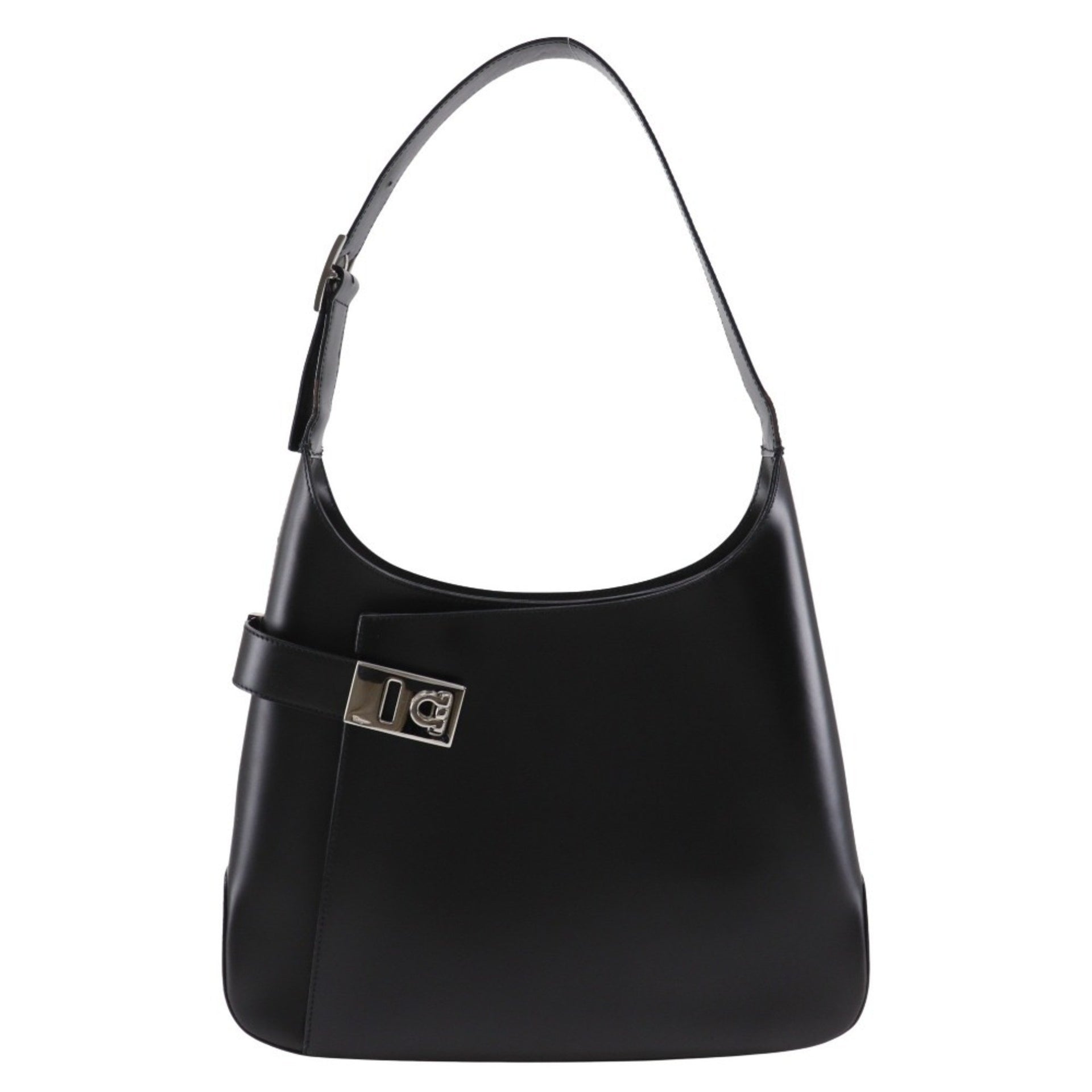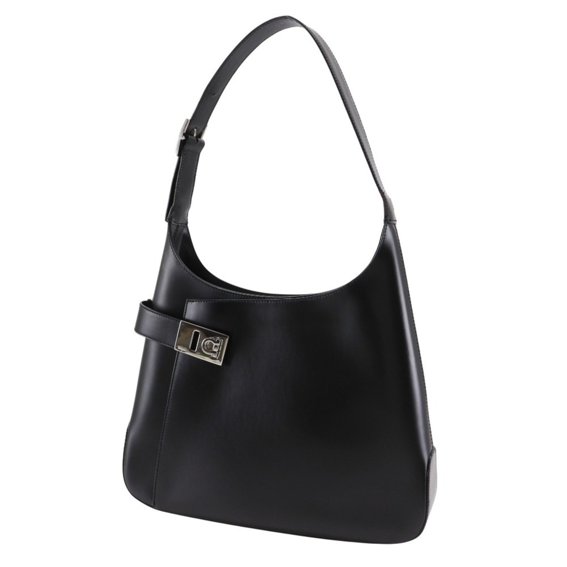 Salvatore Ferragamo Gancini Shoulder Bag AB-21 0169 in Black Calfskin for Women