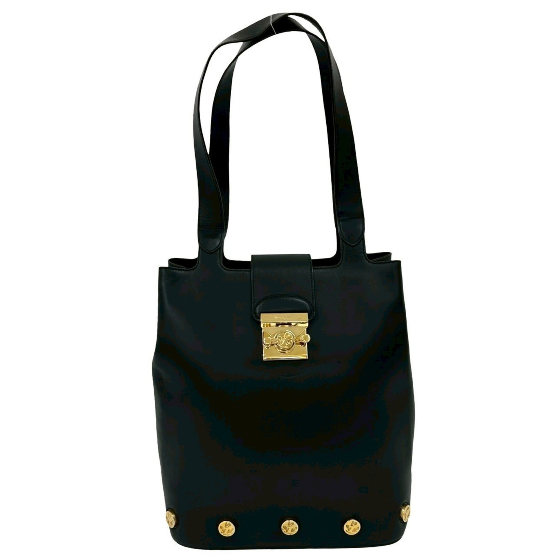 Salvatore Ferragamo pumps with metal heel motif, leather semi-shoulder bag, black, 29557