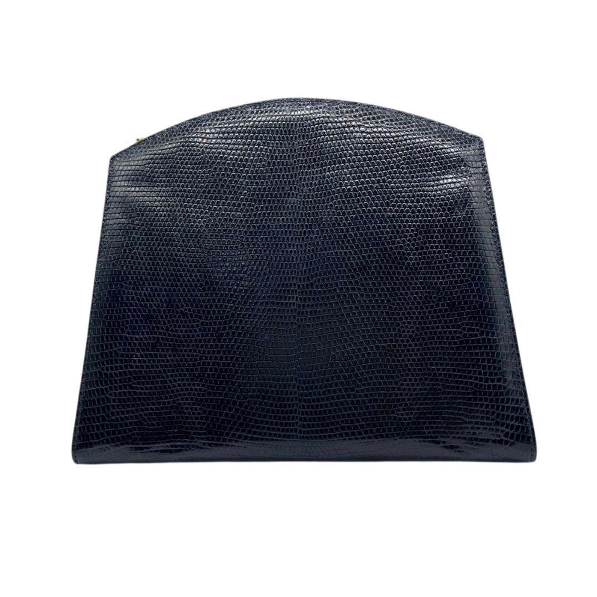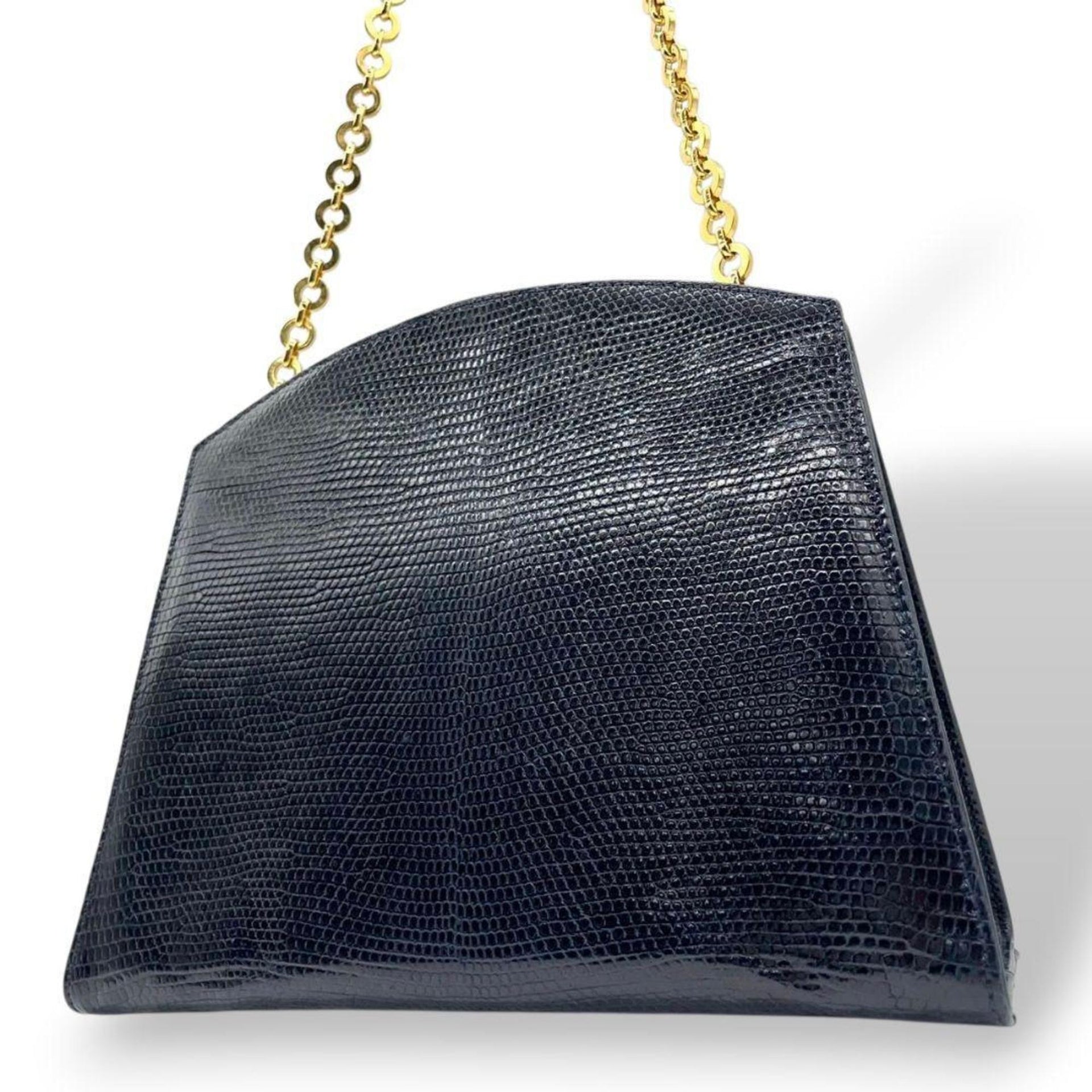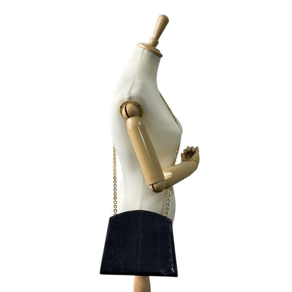 Salvatore Ferragamo Shoulder Bag, Chain, Embossed Leather, Navy Blue, A3 Size, Gold Hardware, AD21 3045