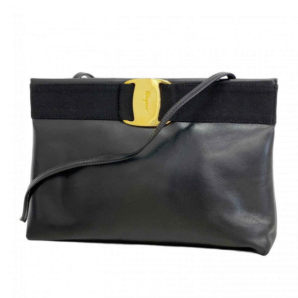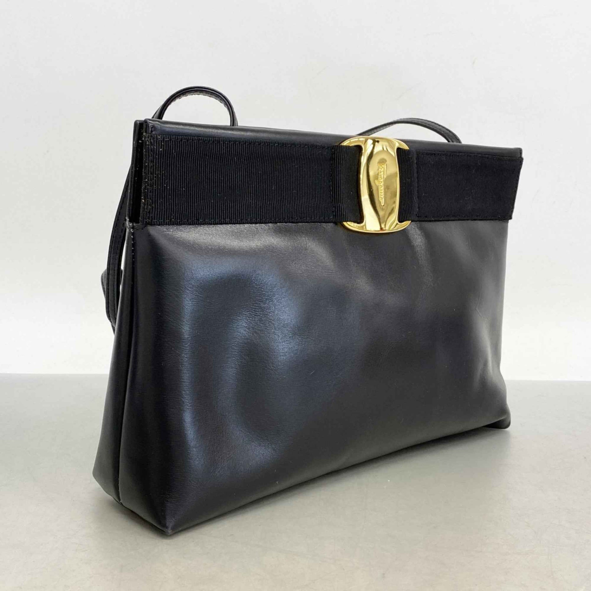 Salvatore Ferragamo Vara Leather Shoulder Bag, Black, Women\'s