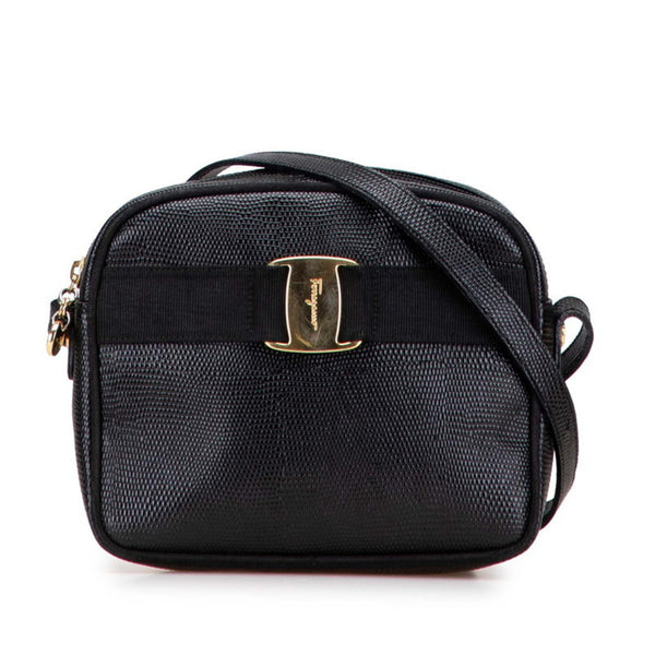 Salvatore Ferragamo Vara Lizard-Embossed Shoulder Bag in Black Leather for Women