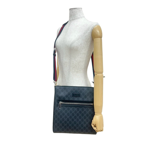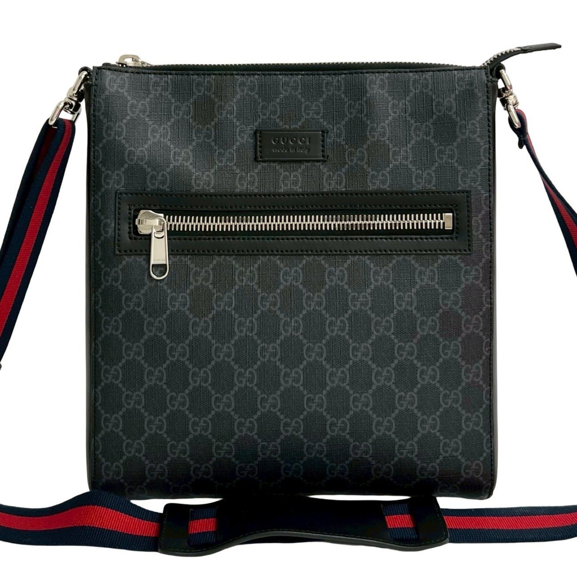 Unused GUCCI GG Supreme Canvas Messenger Bag with Leather Shoulder Bag, Sacoche, Black, 35160