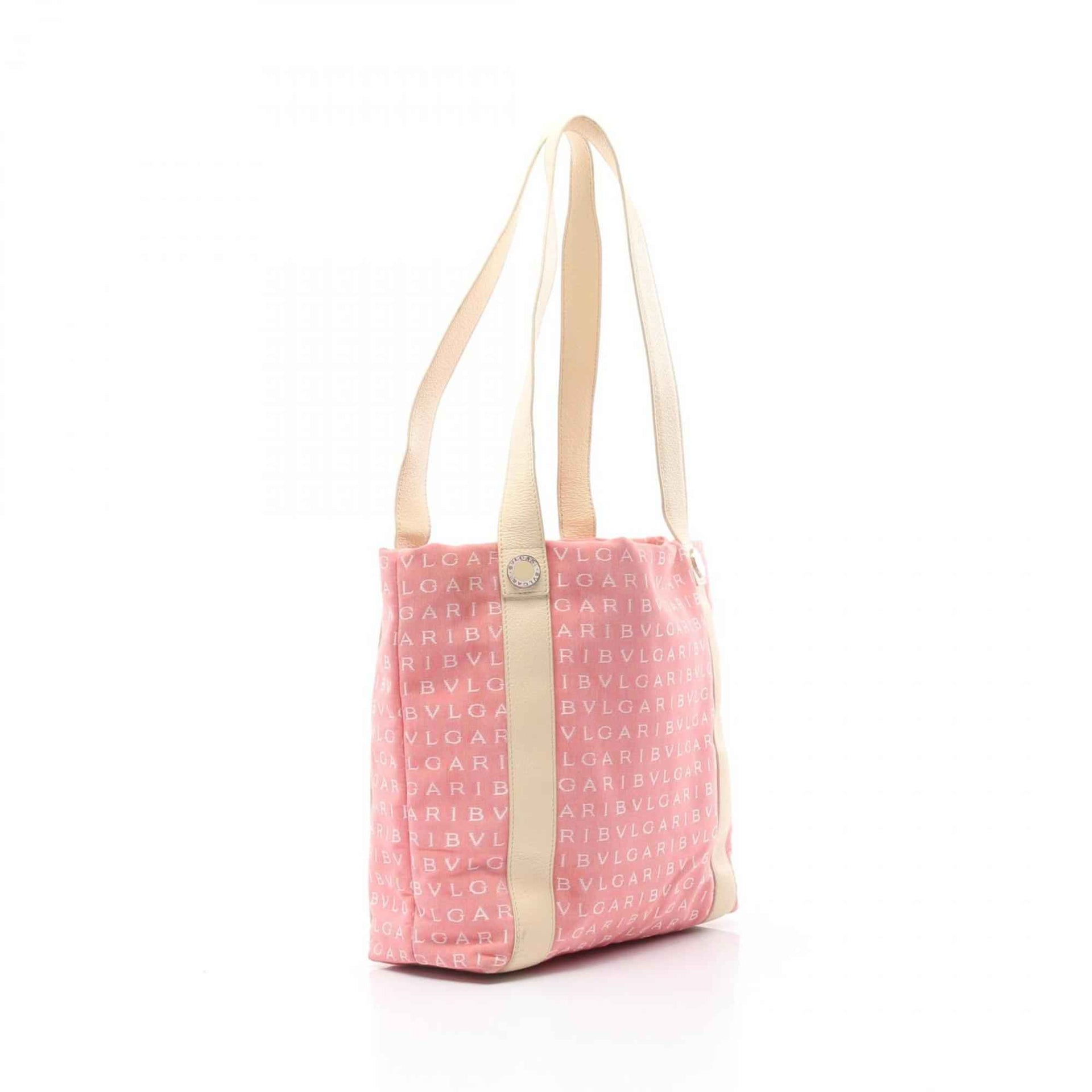 BVLGARI Logomania Tote Bag, Canvas and Leather, Women\'s, Pink Ivory