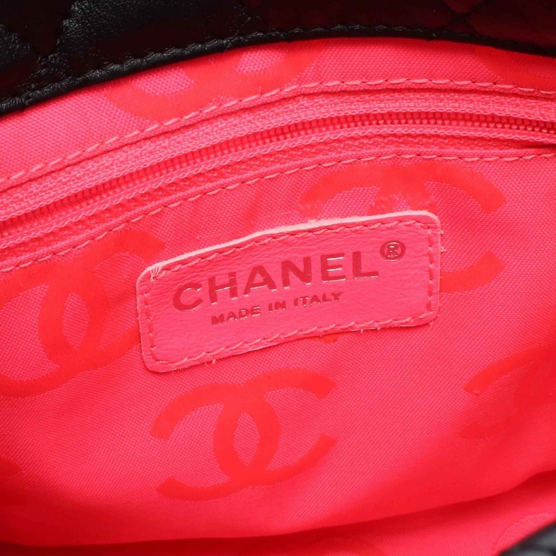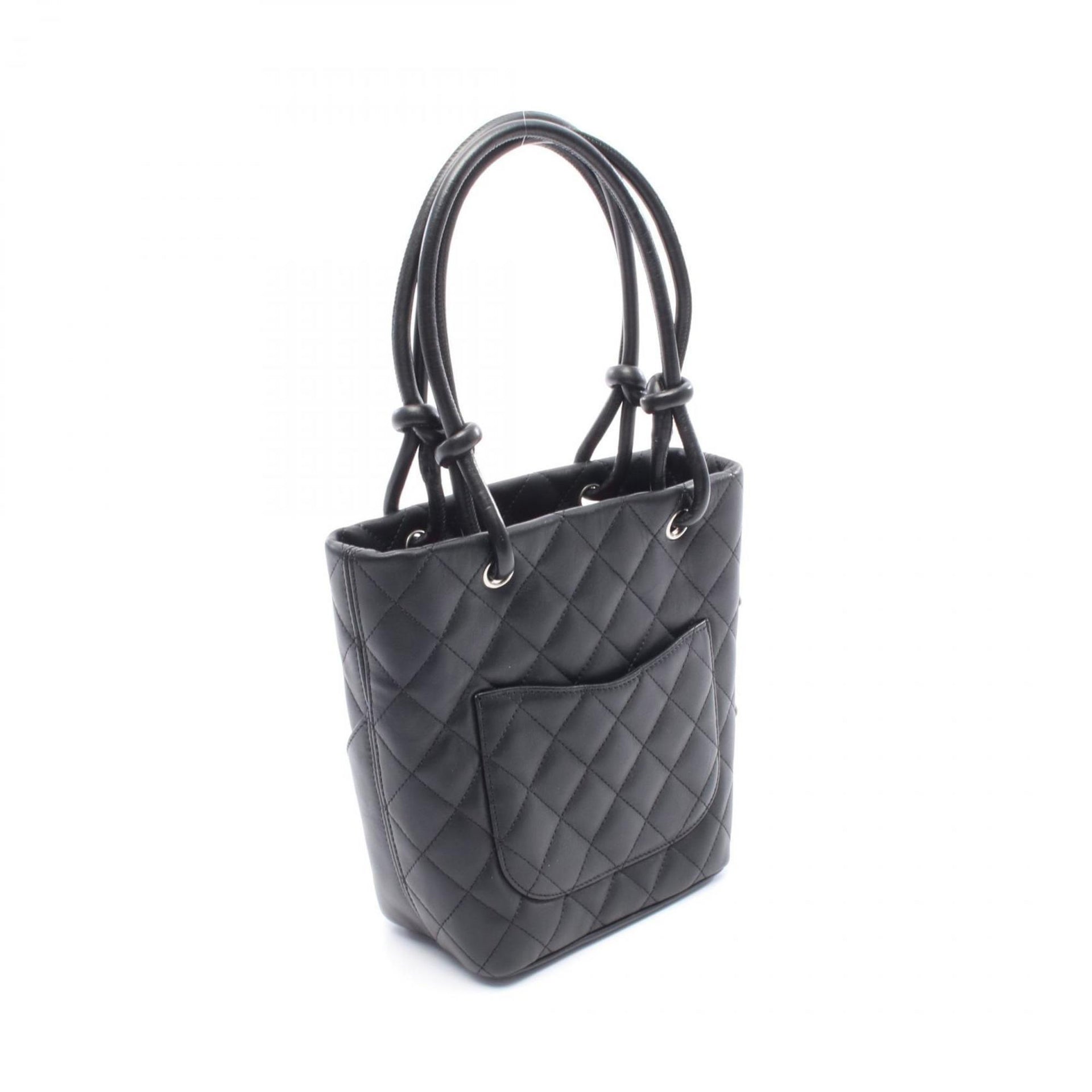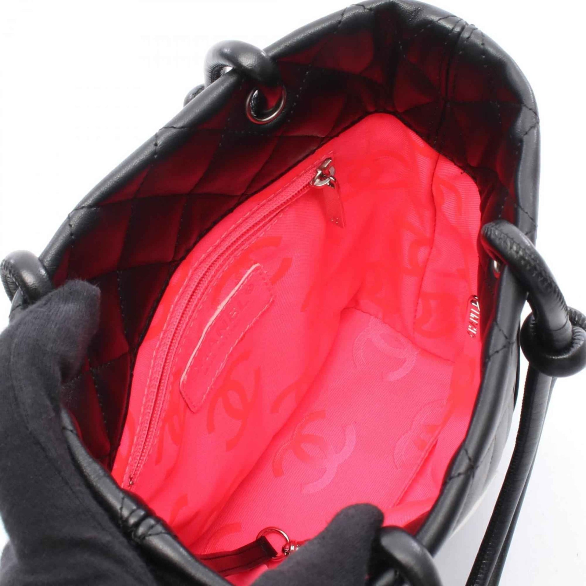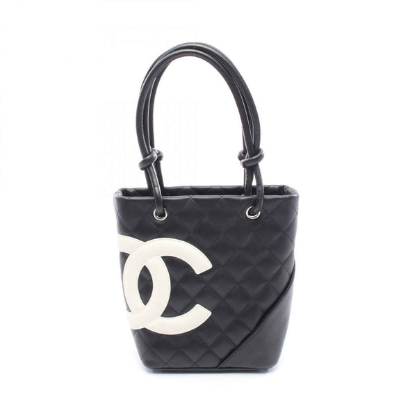 CHANEL Cambon Line Small Tote Bag, Leather, Women\'s, Black and White