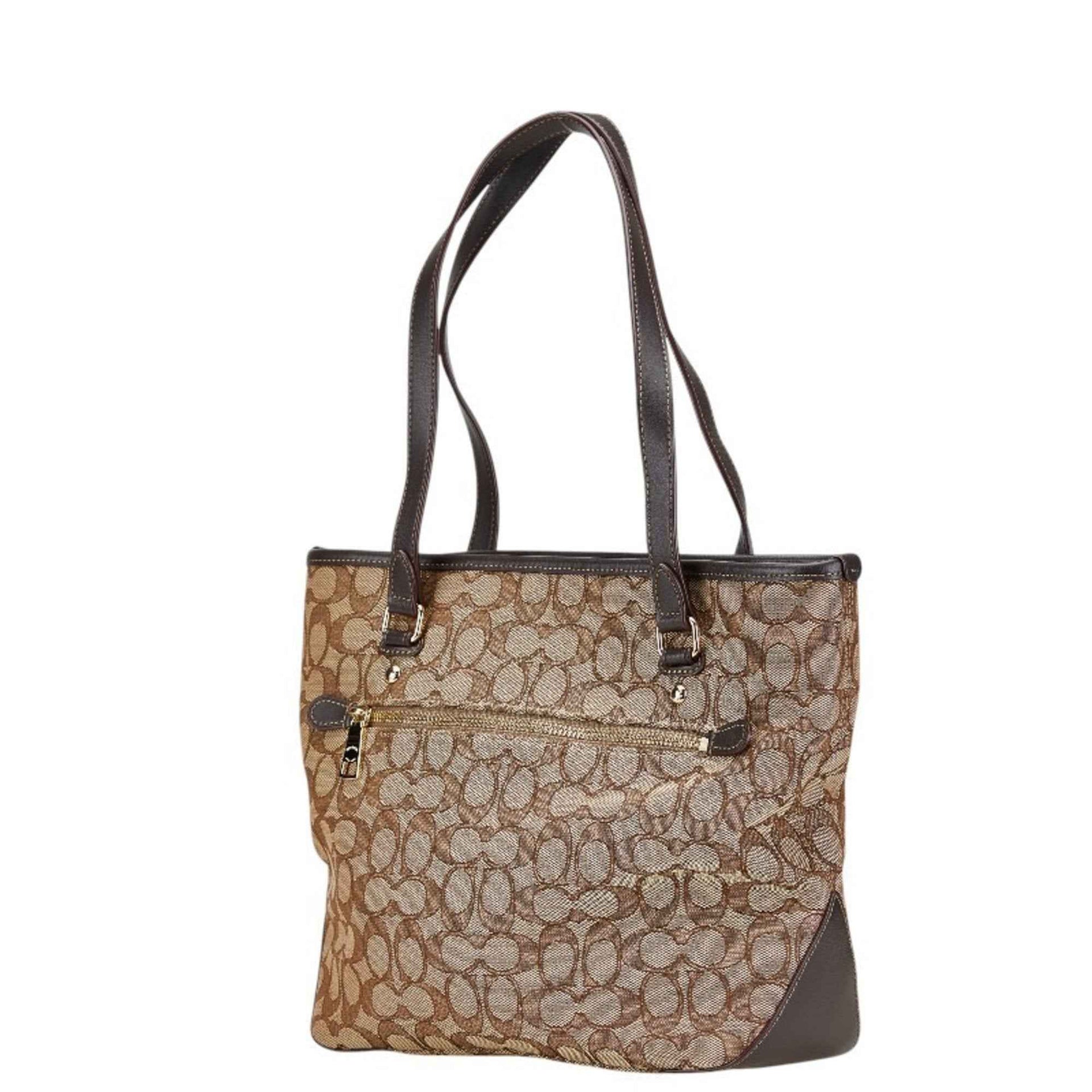 Coach Signature Handbag Tote Bag F58282 Brown Canvas and Leather Women\'s COACH
