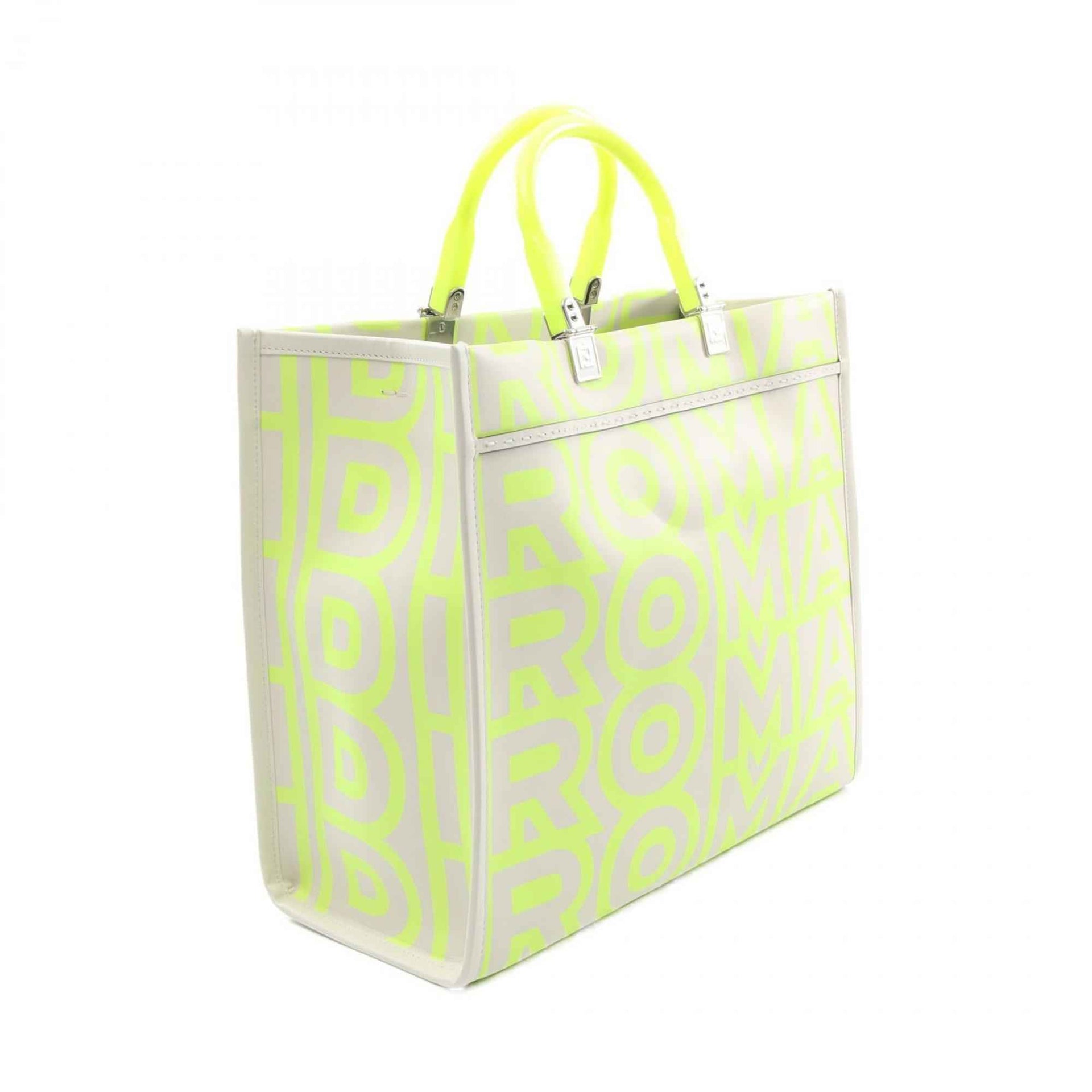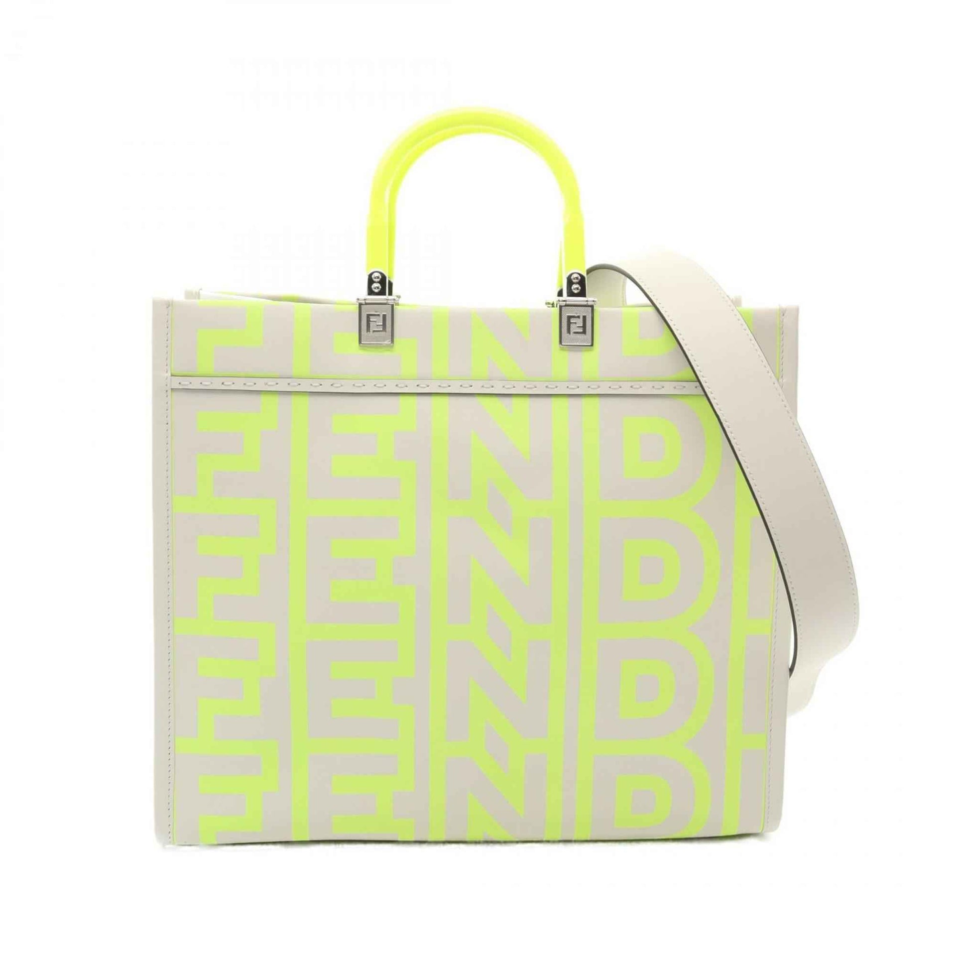 FENDI Marc Jacobs SUNSHINE MEDIUM Tote Bag, Leather, Women\'s, Gray and Green, Small