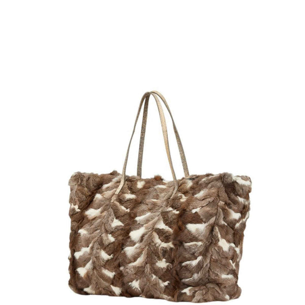 Fendi tote bag, handbag, brown, white fur and leather, women\'s, FENDI