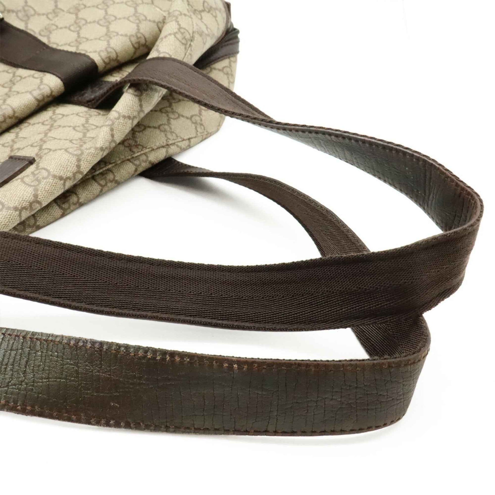 GUCCI GG Supreme Boston Tote Bag in PVC and Leather, Khaki Beige Dark Brown (141915)