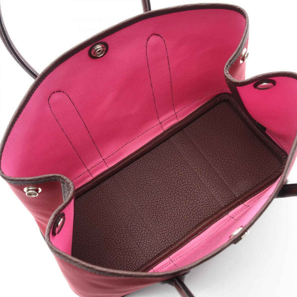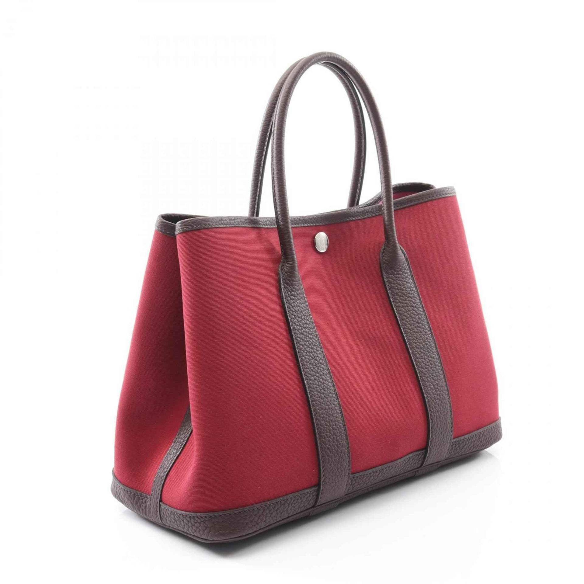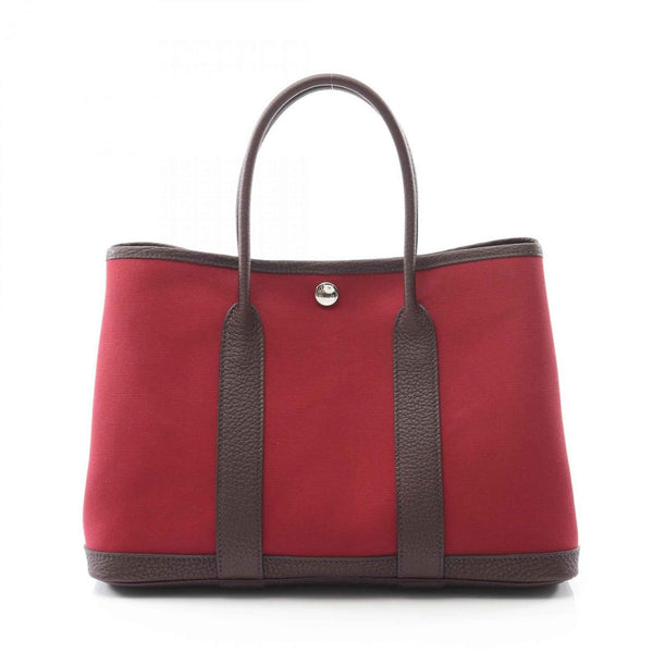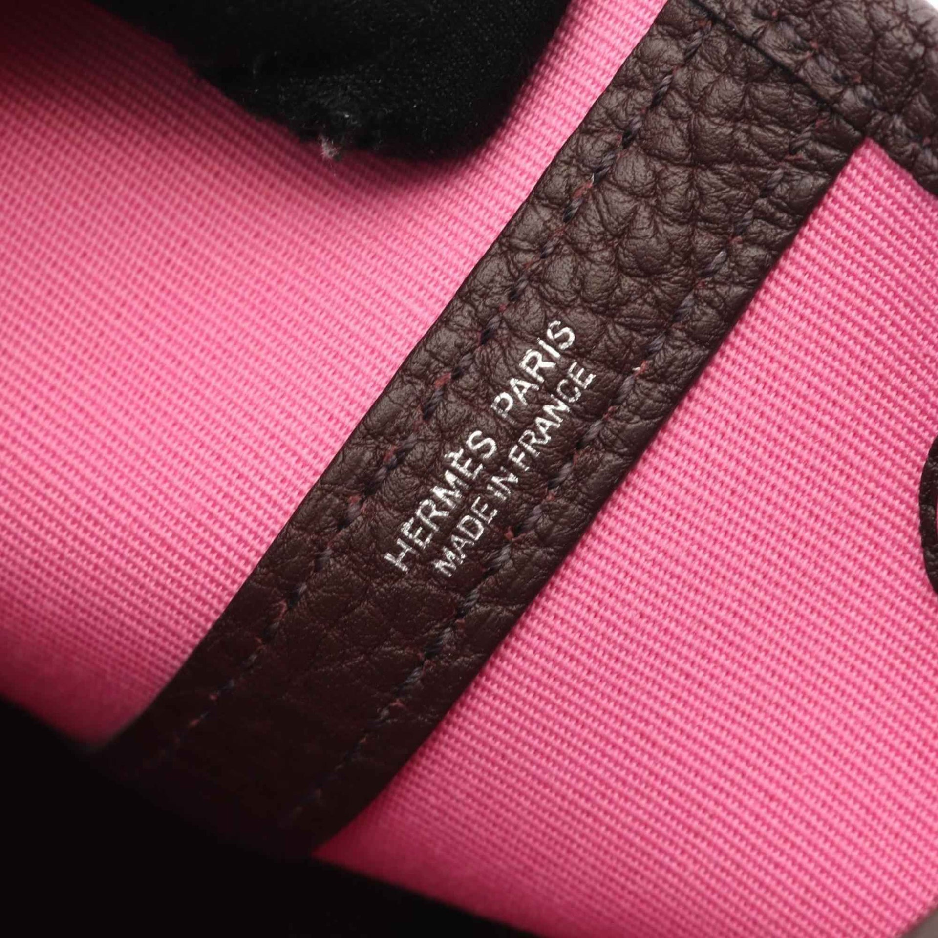Hermes Hermès Garden Party TPM Tote Bag, Canvas and Calfskin Leather, Toile Officier Buffle, Women\'s, Bordeaux Brown