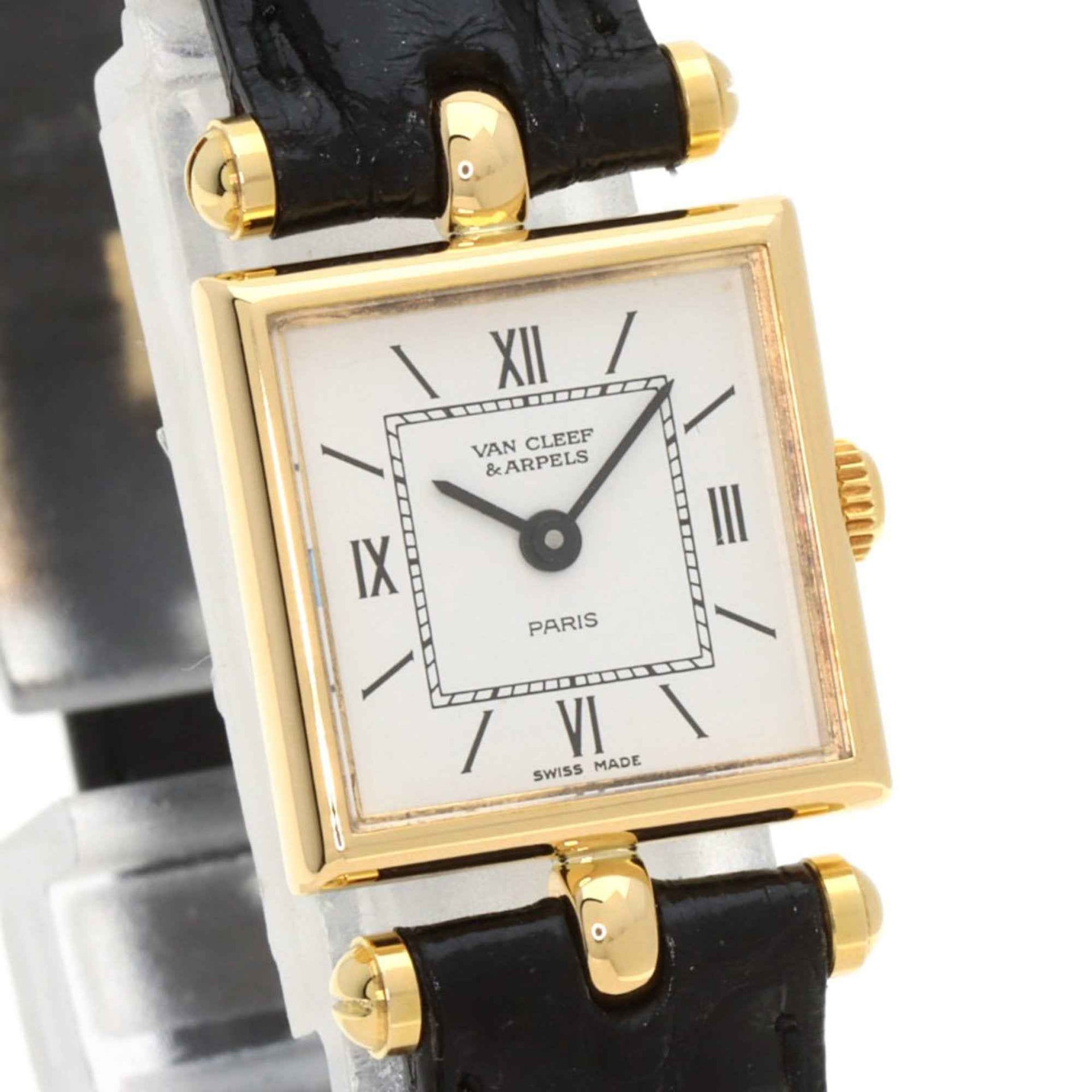 Van Cleef & Arpels 122942B1 Classic Carre Square Watch, 18K Yellow Gold and Leather, Women\'s