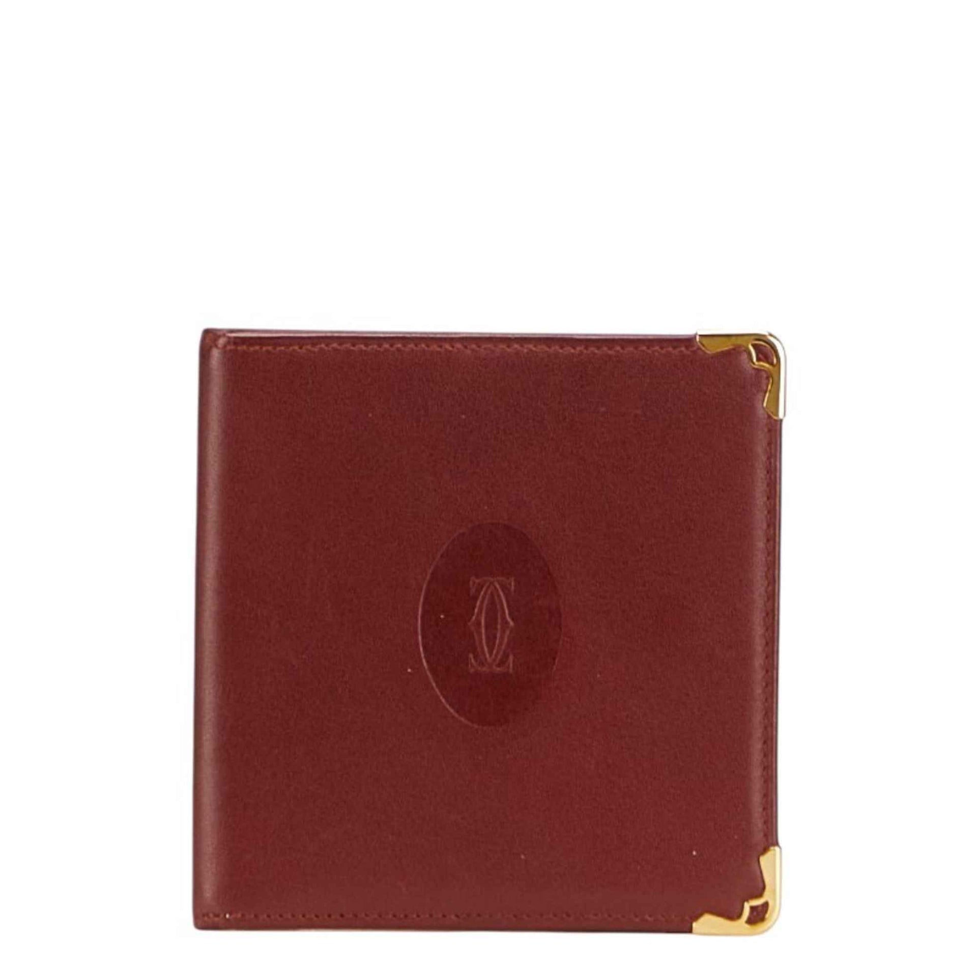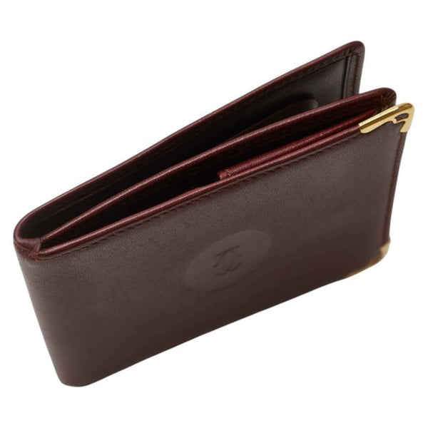 Cartier Must Line Bifold Wallet Wine Red Bordeaux Leather Women\'s CARTIER