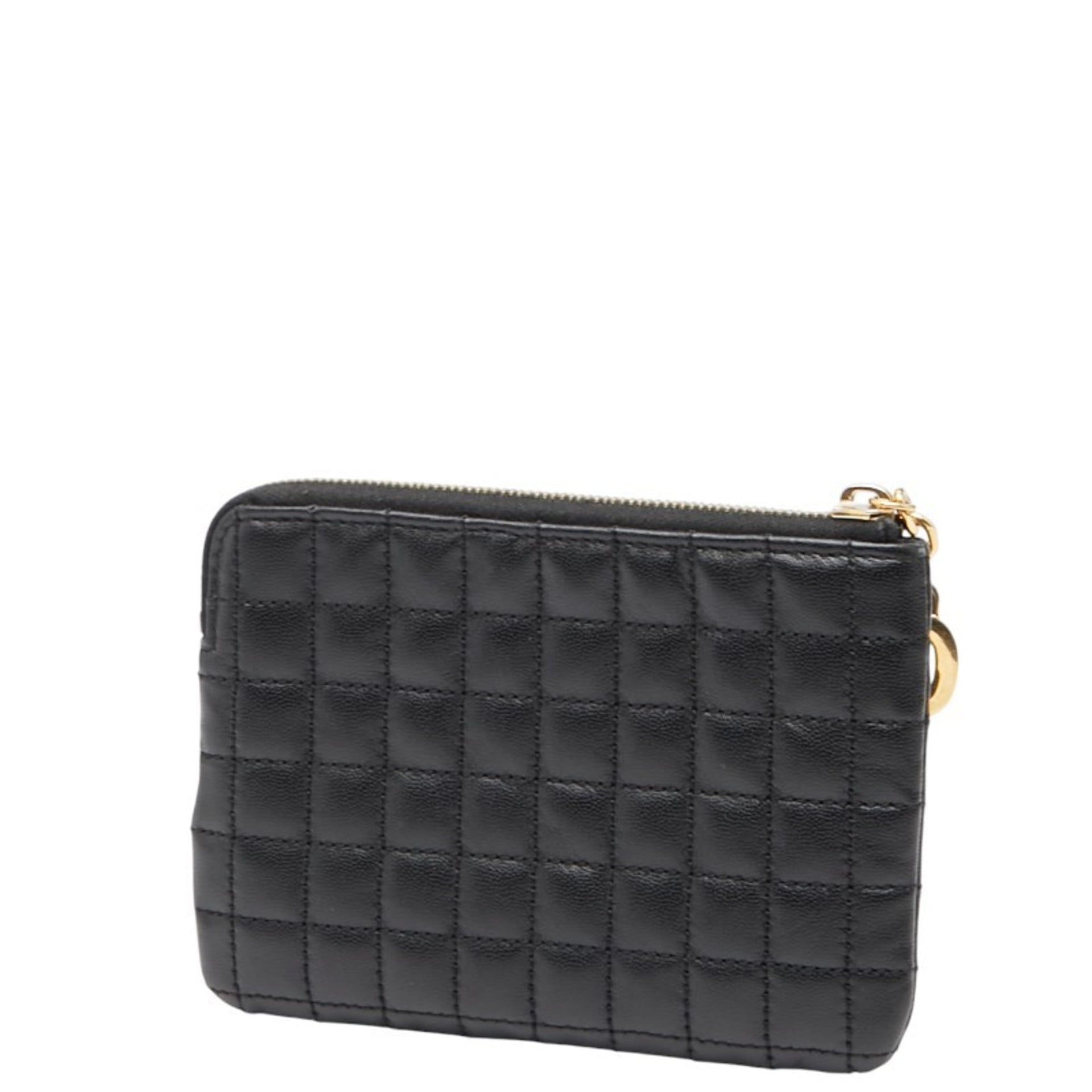Celine C Charm Quilted Wallet/Coin Case/Business Card Case/Card Case Black Leather Women\'s CELINE