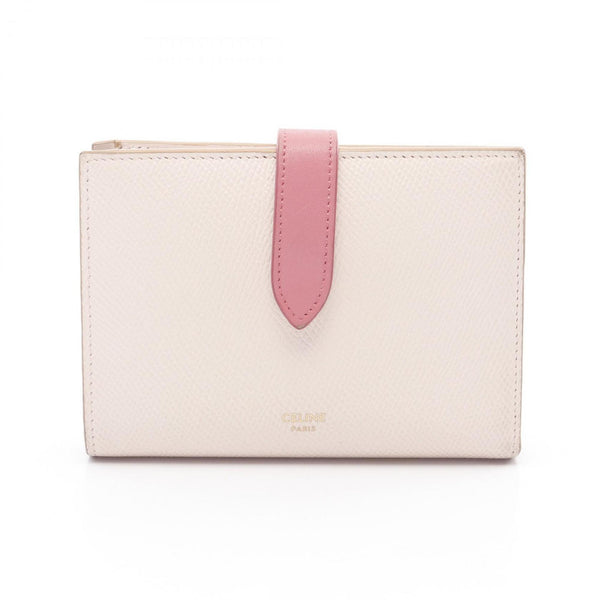 CELINE Medium Strap Wallet Bi-fold Leather Women\'s Pink 10B643