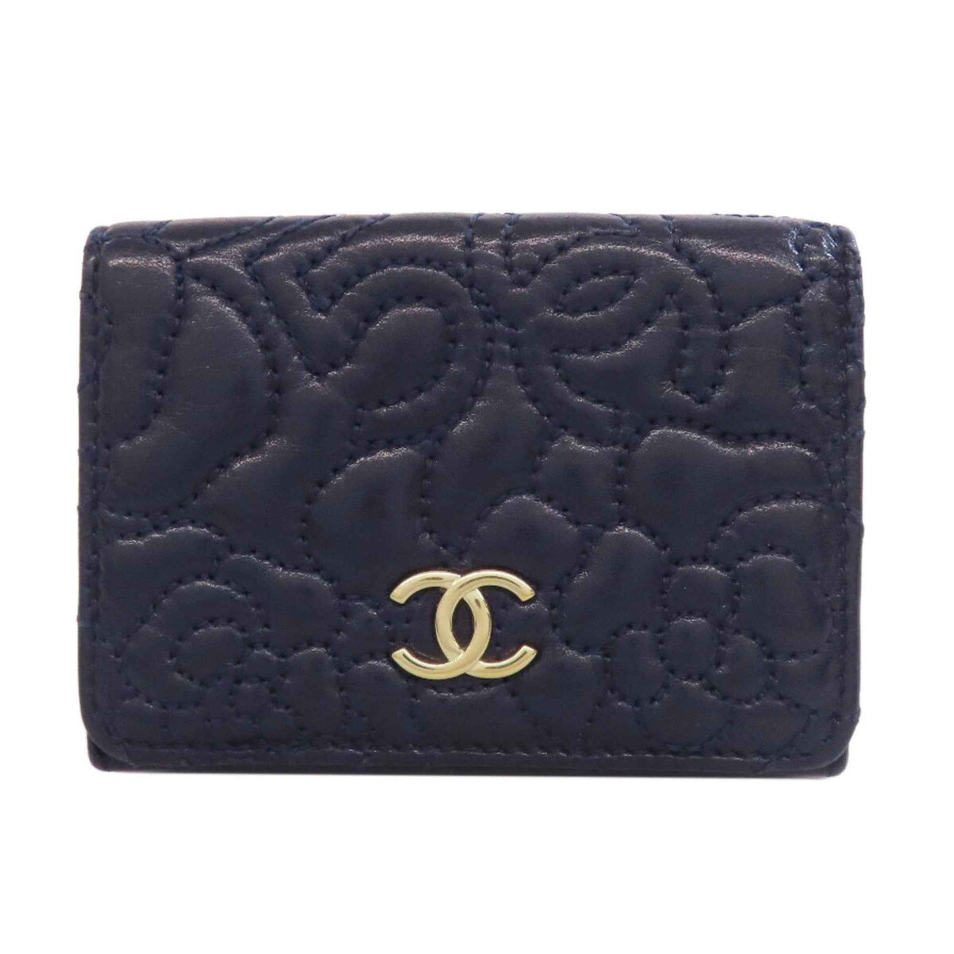CHANEL Tri-fold Wallet, Compact Coco Mark Bi-fold Lambskin, Women\'s,