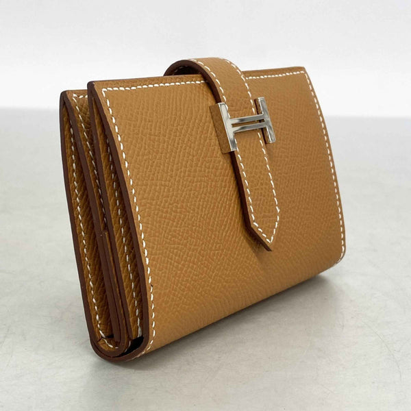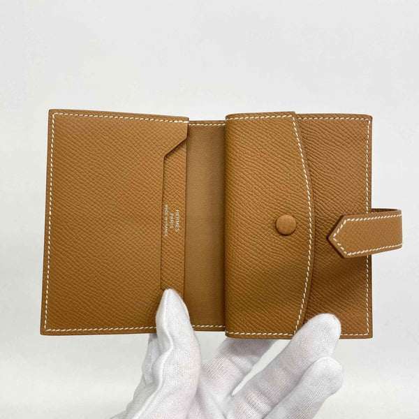 Hermes Hermès Bearn Mini Wallet/Coin Case, Epsom Leather, Gold, B Stamp, Women\'s