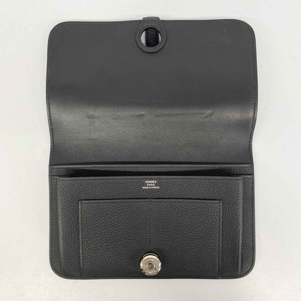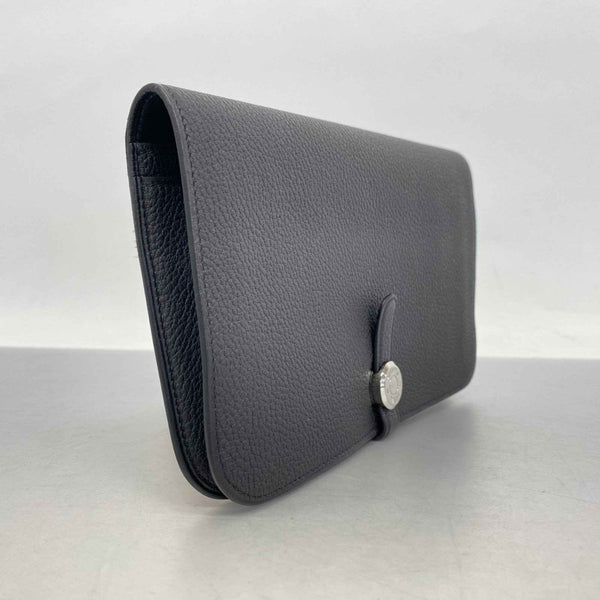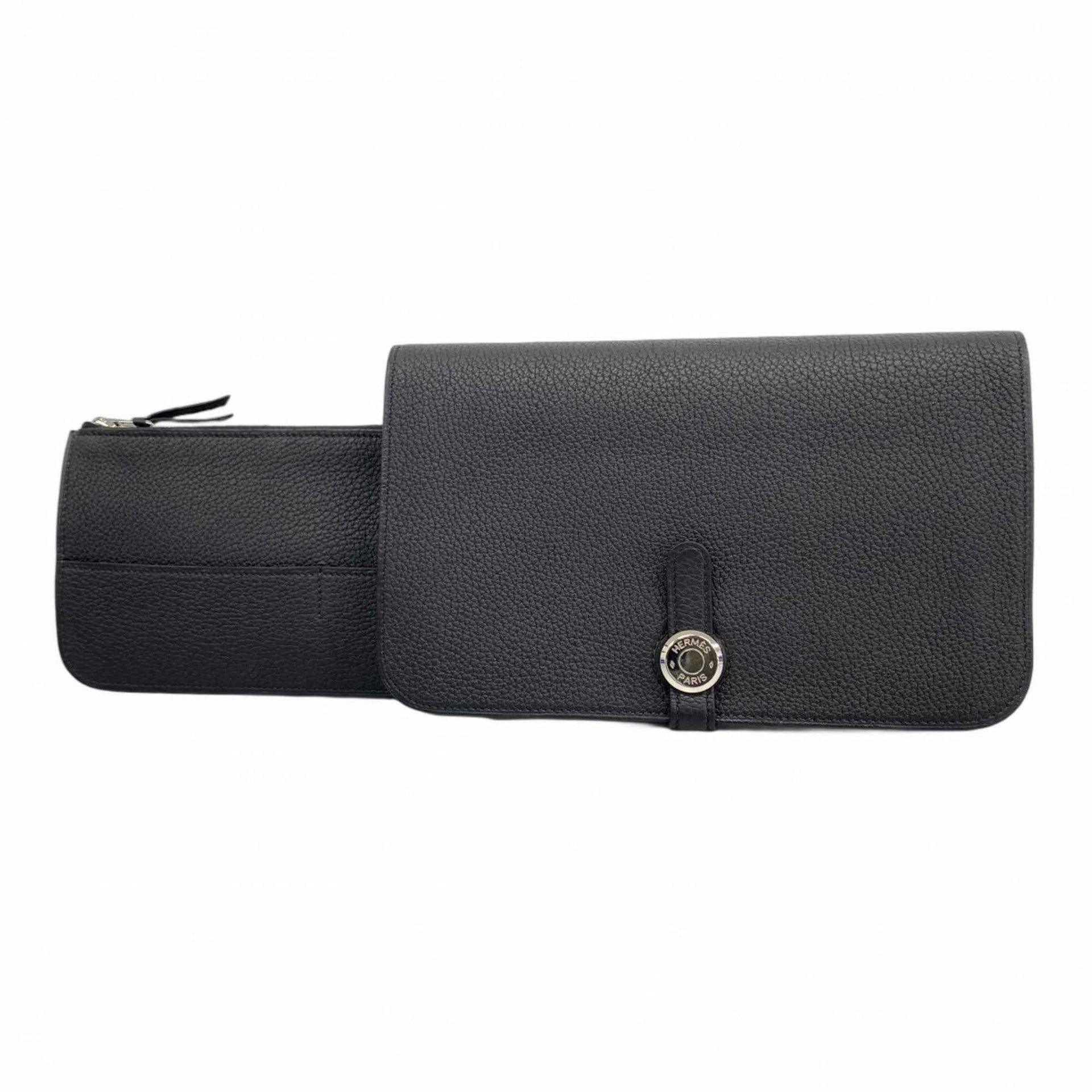 Hermes Hermès Dogon GM Long Wallet in Taurillon Clemence Leather, Black, Double Stamped, Men\'s and Women\'s