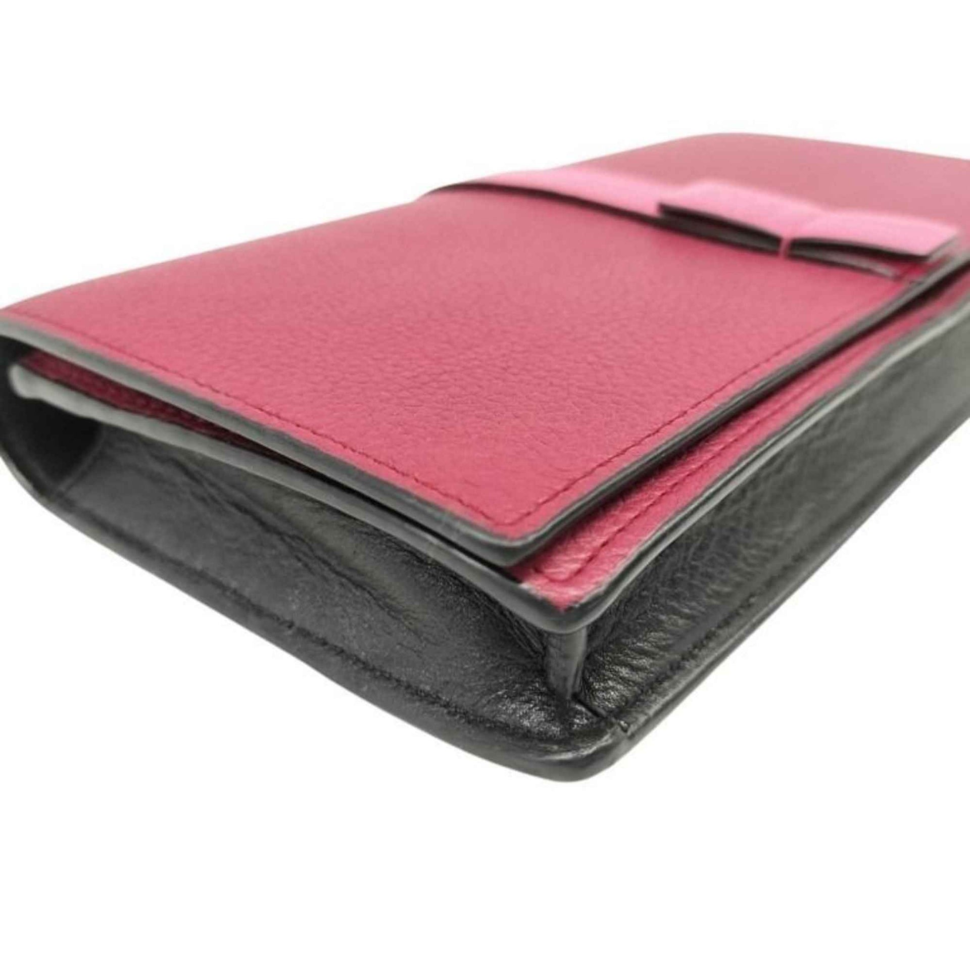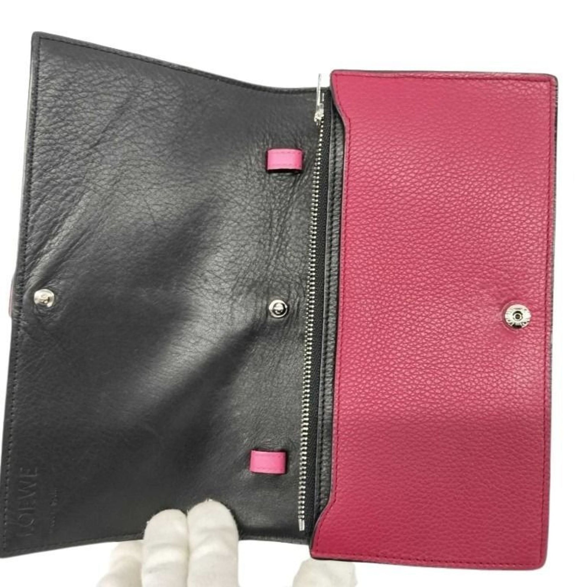 LOEWE Vertical Chain Wallet in Red, Pink, and Black Leather. Women\'s Bifold Long Wallet.
