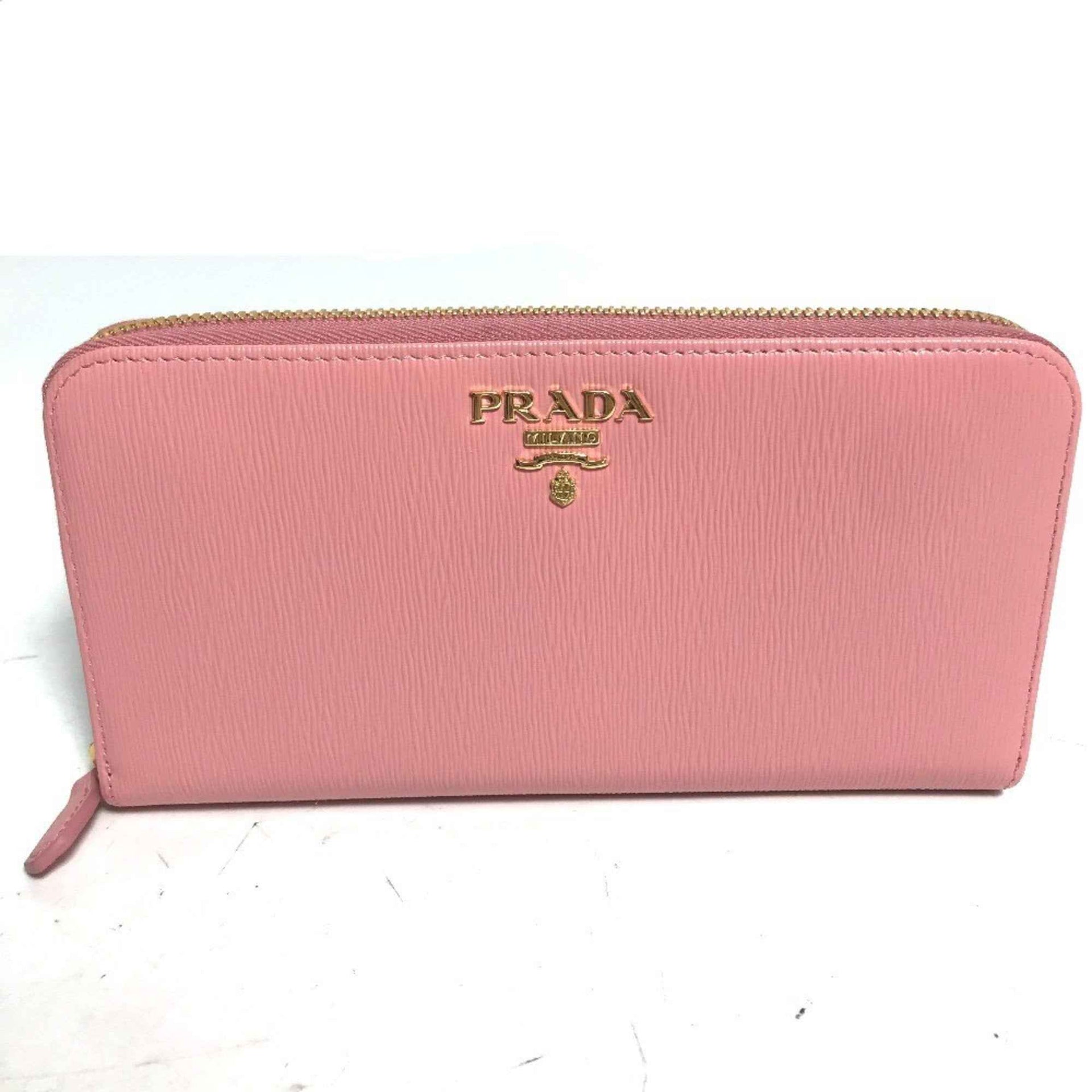 PRADA Prada logo round zipper long wallet, leather, women\'s, pink