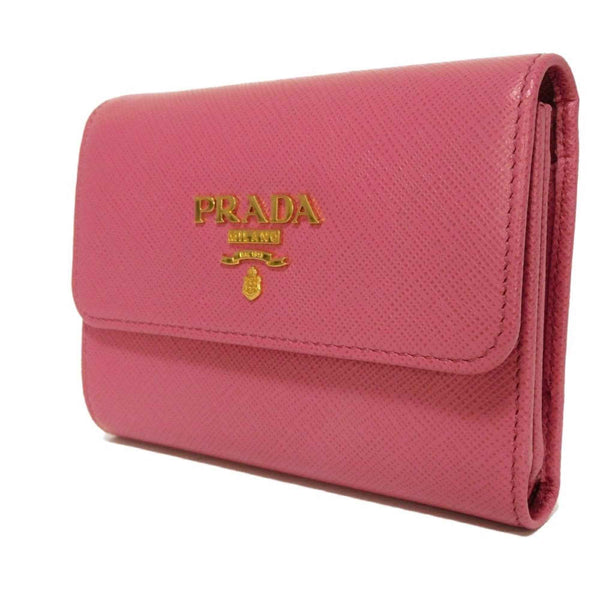 PRADA Saffiano Compact Tri-fold Wallet, Pink, Unused, Metal, Peony, 1MH025 QWA F0505, Women\'s