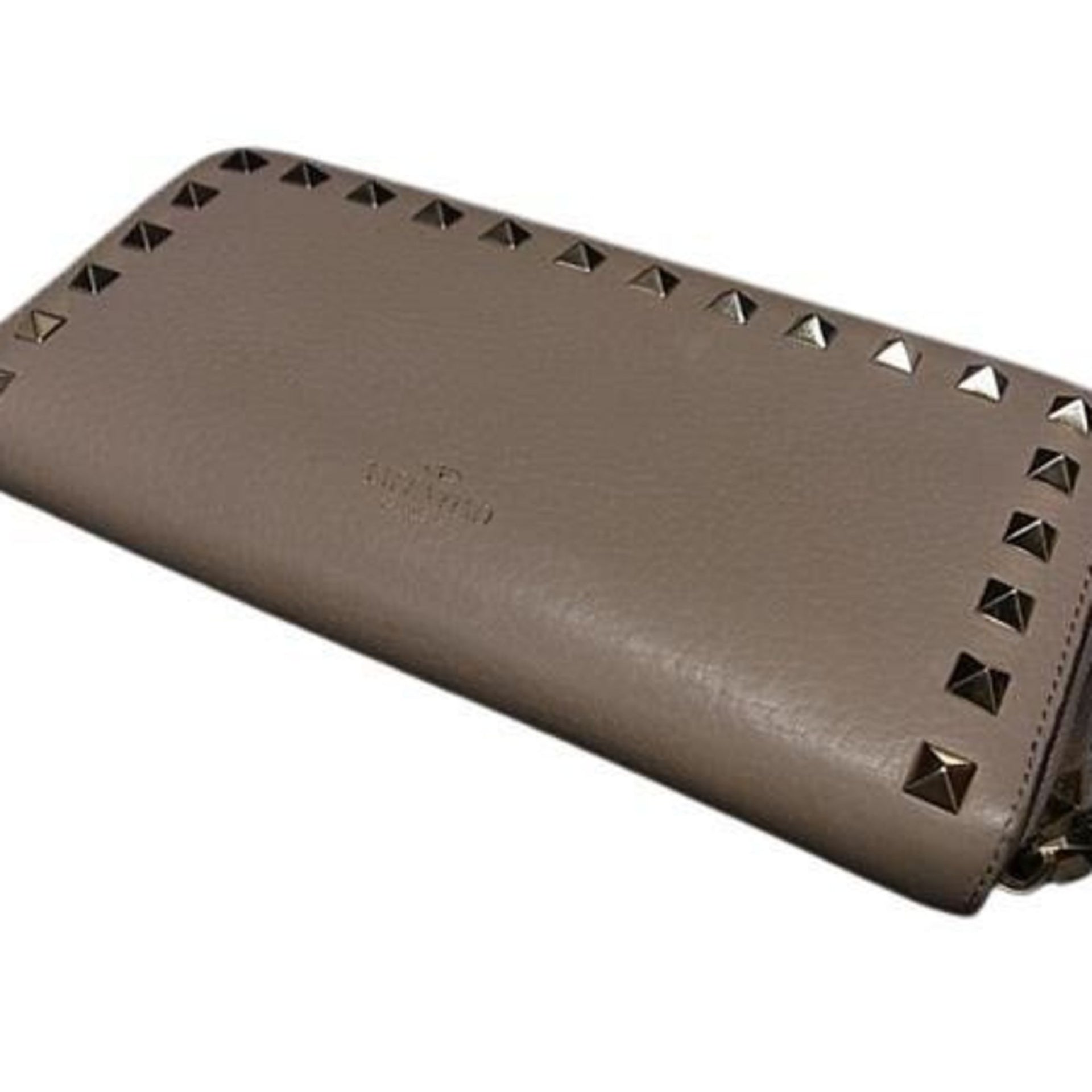 VALENTINO GARAVANI Valentino Garavani Rockstud Beige Leather Women\'s Round Long Wallet