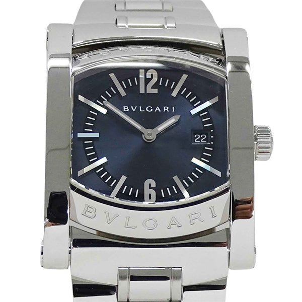 Bvlgari BVLGARI Boys\' Assioma Date Quartz QZ Stainless Steel Watch AA39S Silver Navy Polished