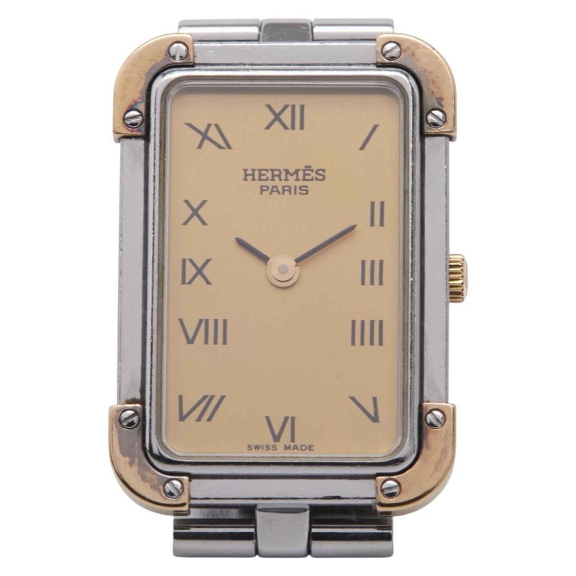 Hermès Cloiseur Watch CR1.220 Quartz Gold Dial Stainless Steel Plated Women\'s HERMES