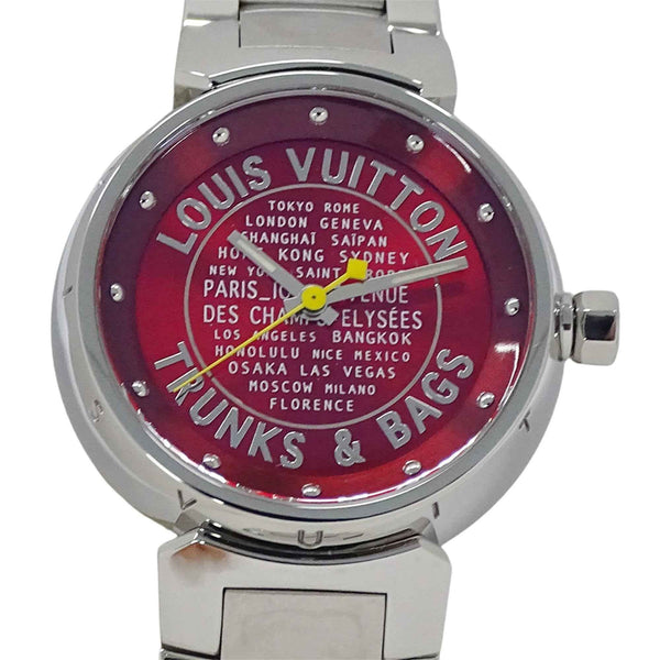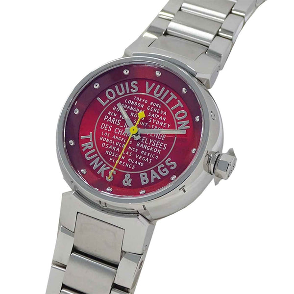 Louis Vuitton Tambour TRUNKS & BAGS Quartz Watch, QZ Stainless Steel, Q121N, Silver and Red, Round, Polished