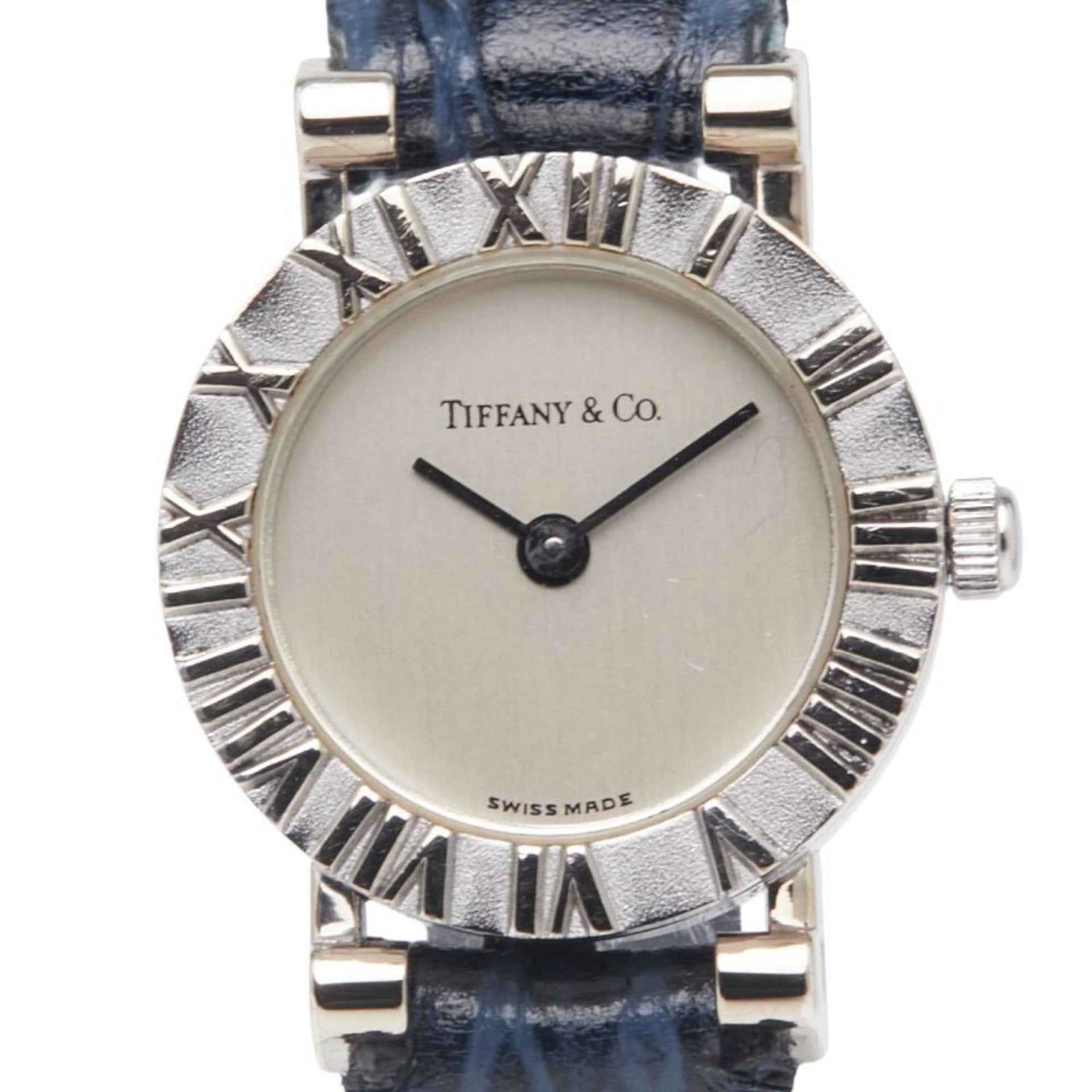 Tiffany & Co. Atlas Watch D286753, Women\'s Quartz with Silver Dial, Leather Strap, and Stainless Steel.