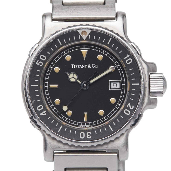 Tiffany & Co. Diver Classic Watch L 0711, Quartz Movement, Black Dial, Stainless Steel, Women\'s