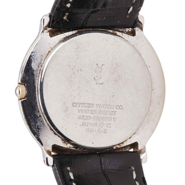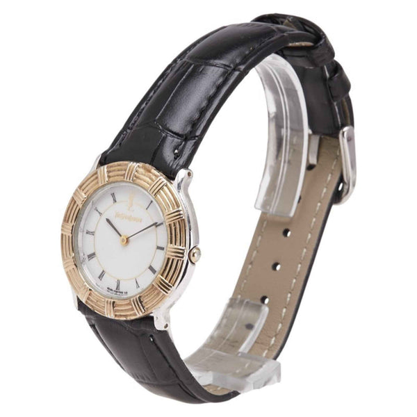 Yves Saint Laurent Women\'s Watch with Black Leather Strap (Non-OEM) 4620-E60965Y Quartz Movement, White Dial, Plated