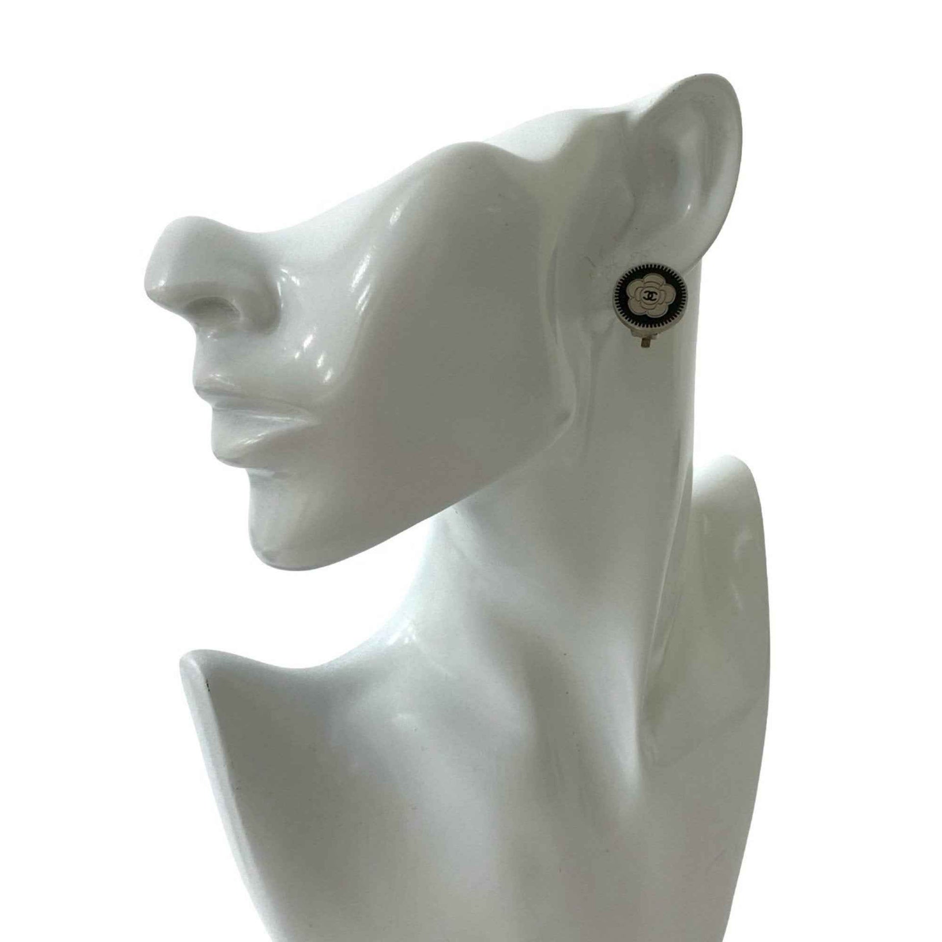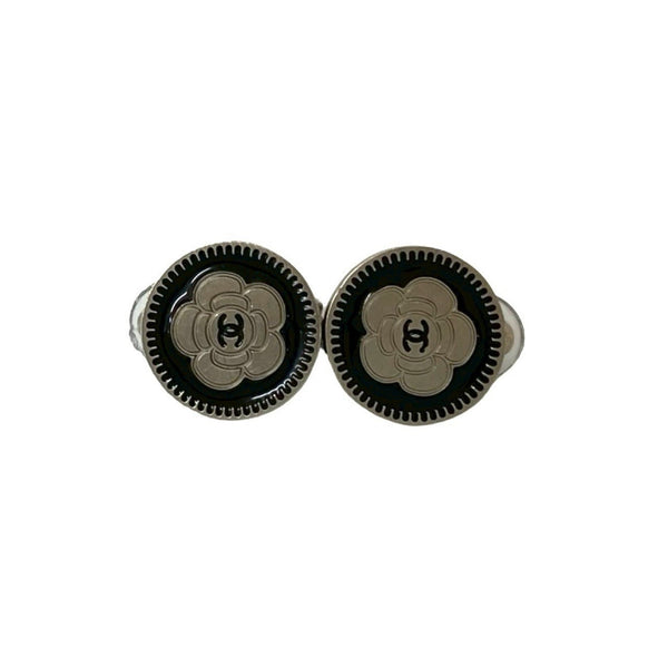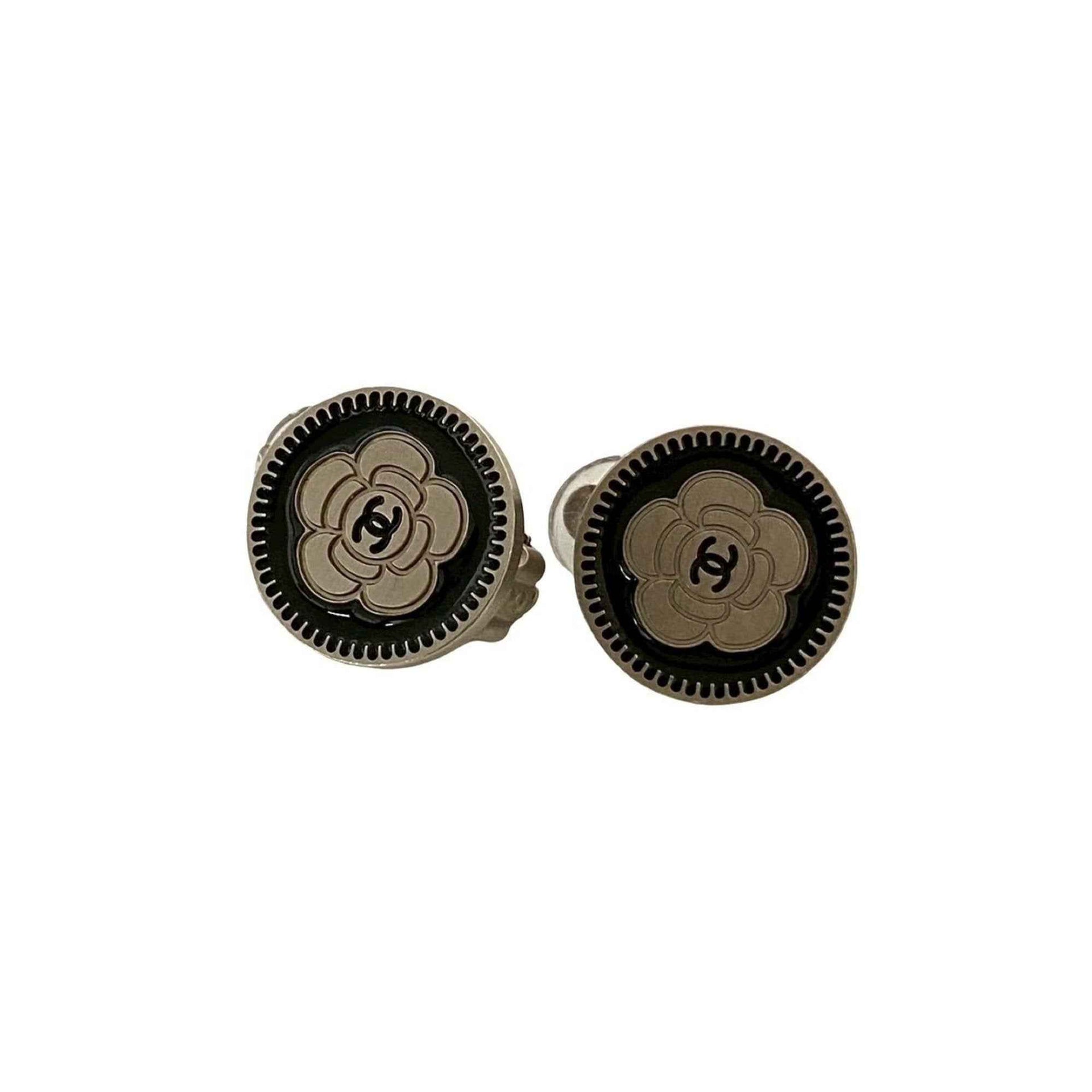06P CHANEL Camellia Coco Mark Plated Earrings and Ear Cuffs in Silver 66974