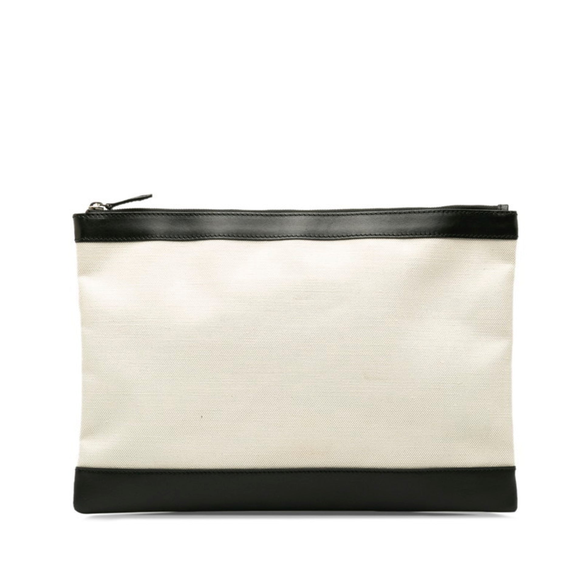 Balenciaga Clutch Bag 373840 Beige Black Canvas Leather Women\'s BALENCIAGA