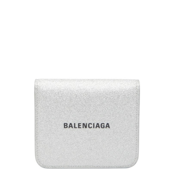 Balenciaga Logo Bifold Wallet 594216 Silver Leather Women\'s BALENCIAGA