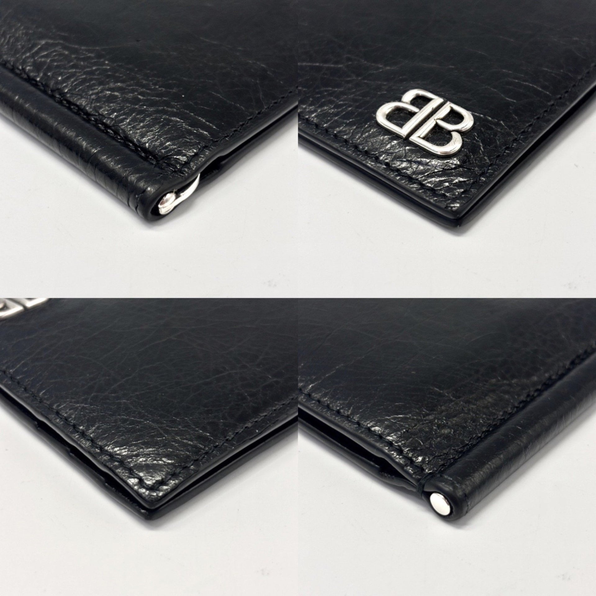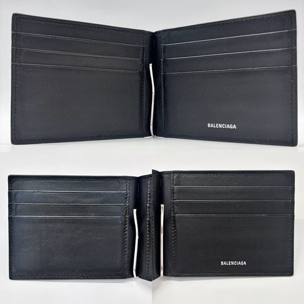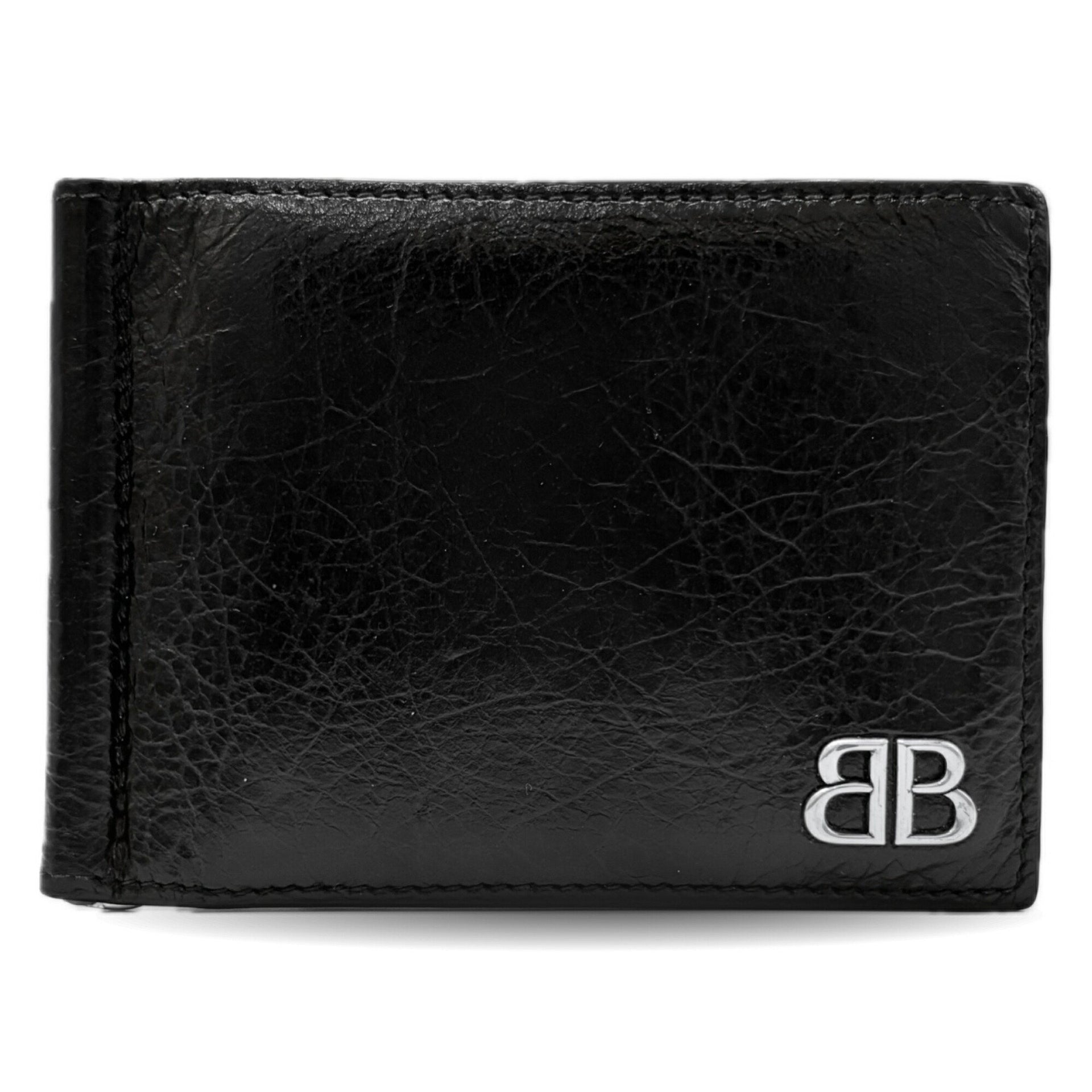 Balenciaga Monaco BB Money Clip Men\'s Black Lambskin Leather Bifold Wallet, 2024SS, 792665