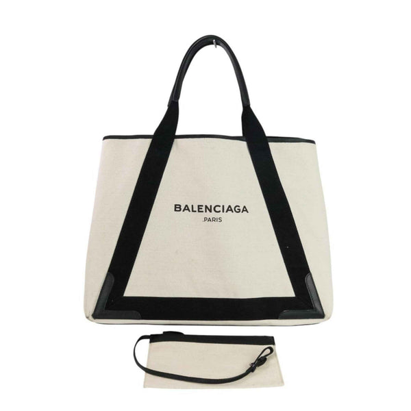 BALENCIAGA Navy Cabas M Canvas Tote Bag 339936 Ivory Black Women\'s