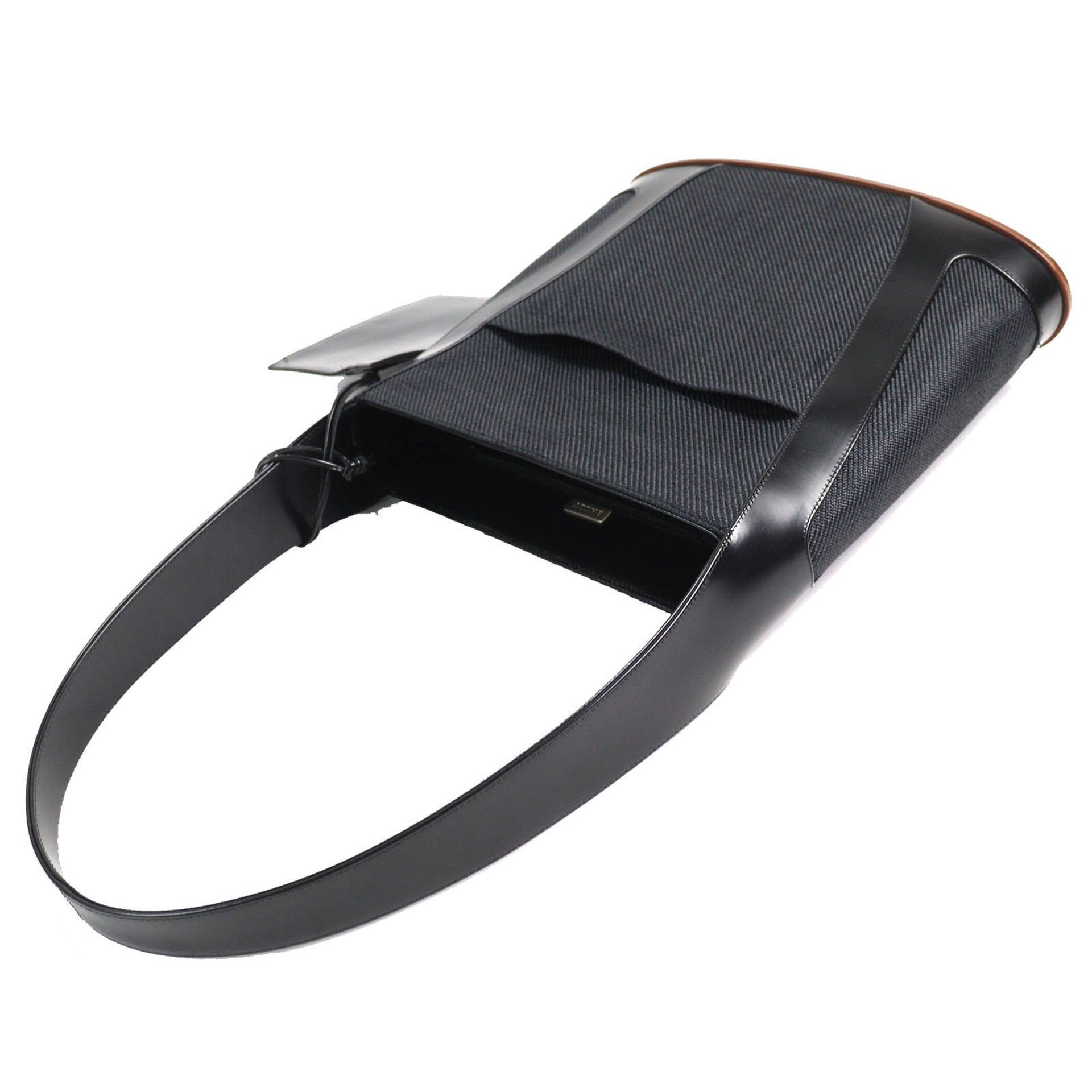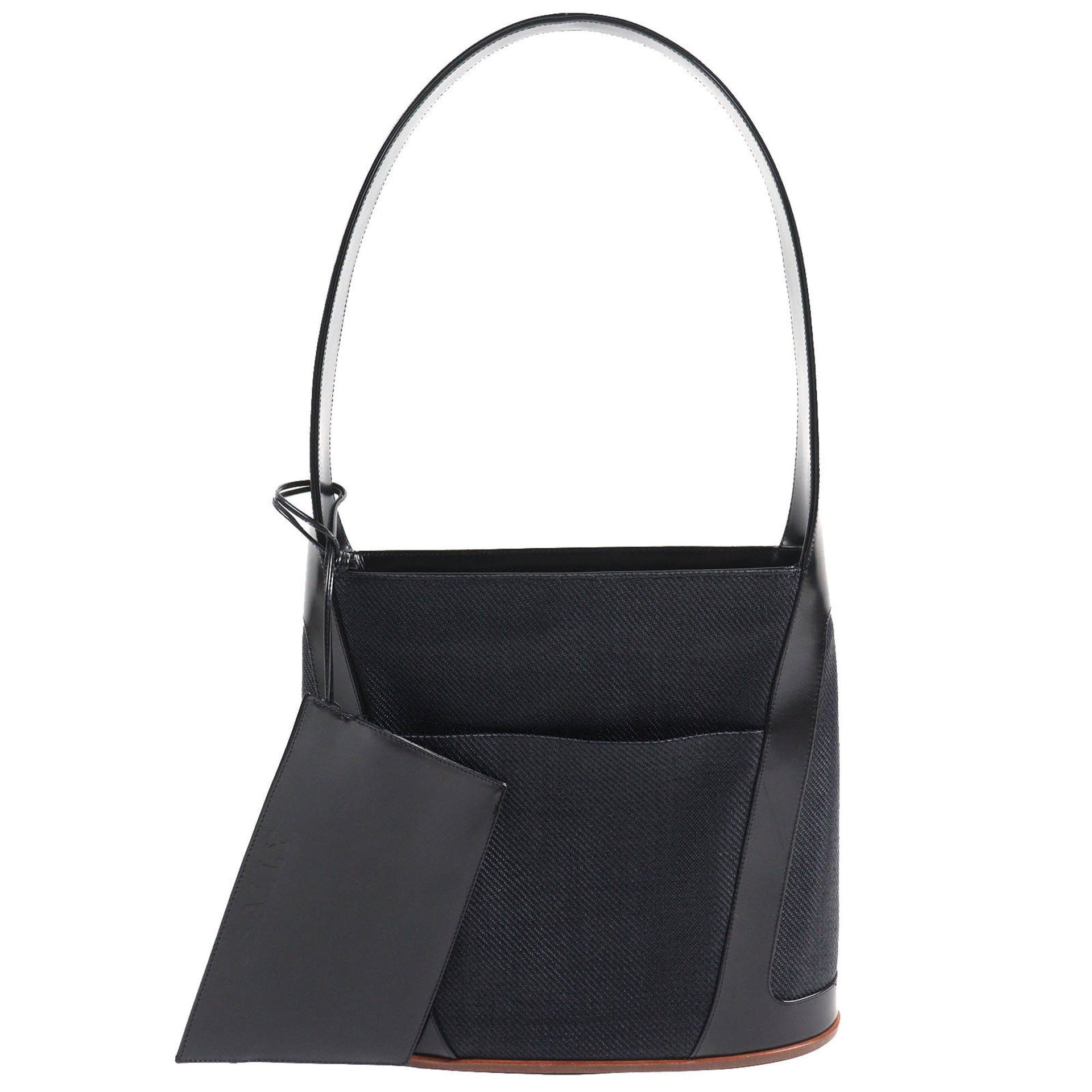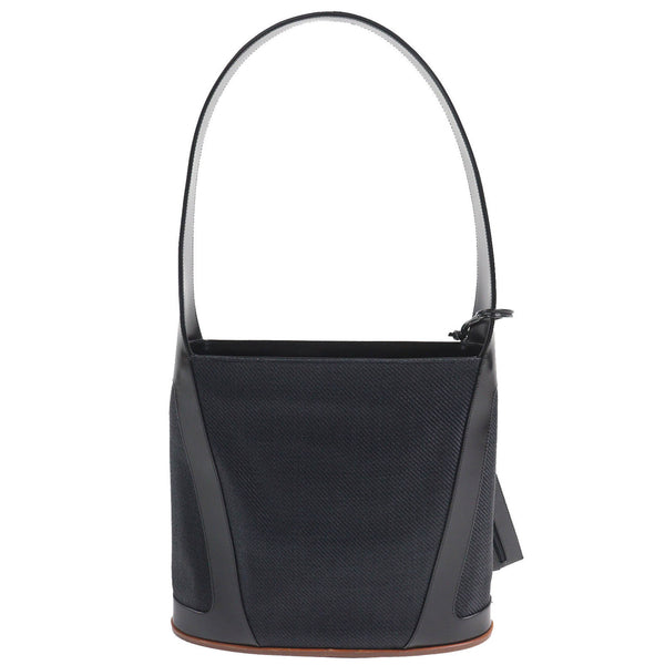 BALLY Leather Canvas Tote Bag with Pouch, All-Over Logo Interior, Wood Accents, and One-Shoulder Bag, Black, Made in Italy, Women\'s