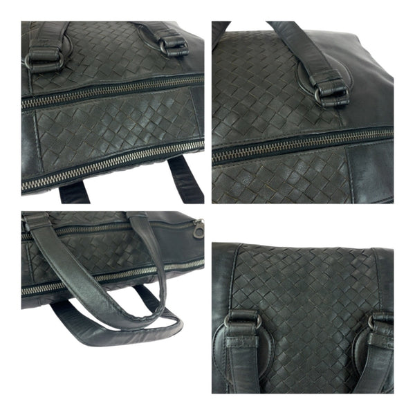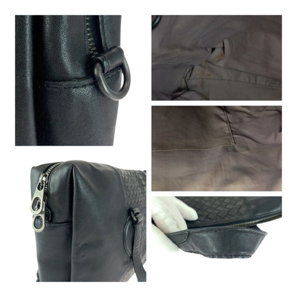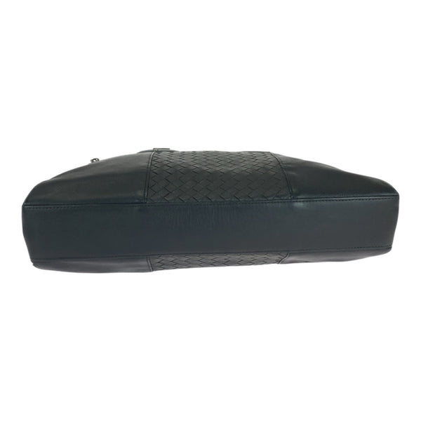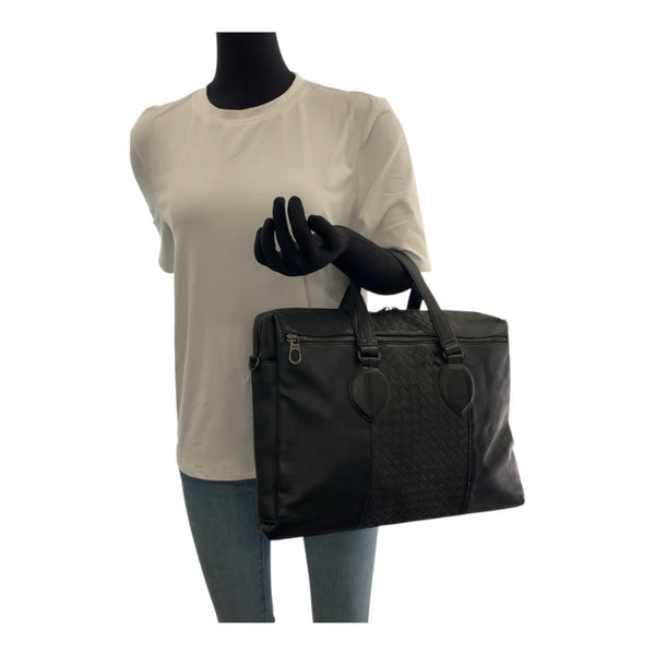 BOTTEGA VENETA Intrecciato black leather business bag with silver hardware, briefcase, and shoulder for men