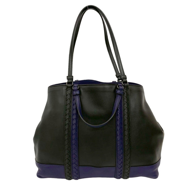 BOTTEGA VENETA Intrecciato Leather Tote Bag, Black/Blue, 83891