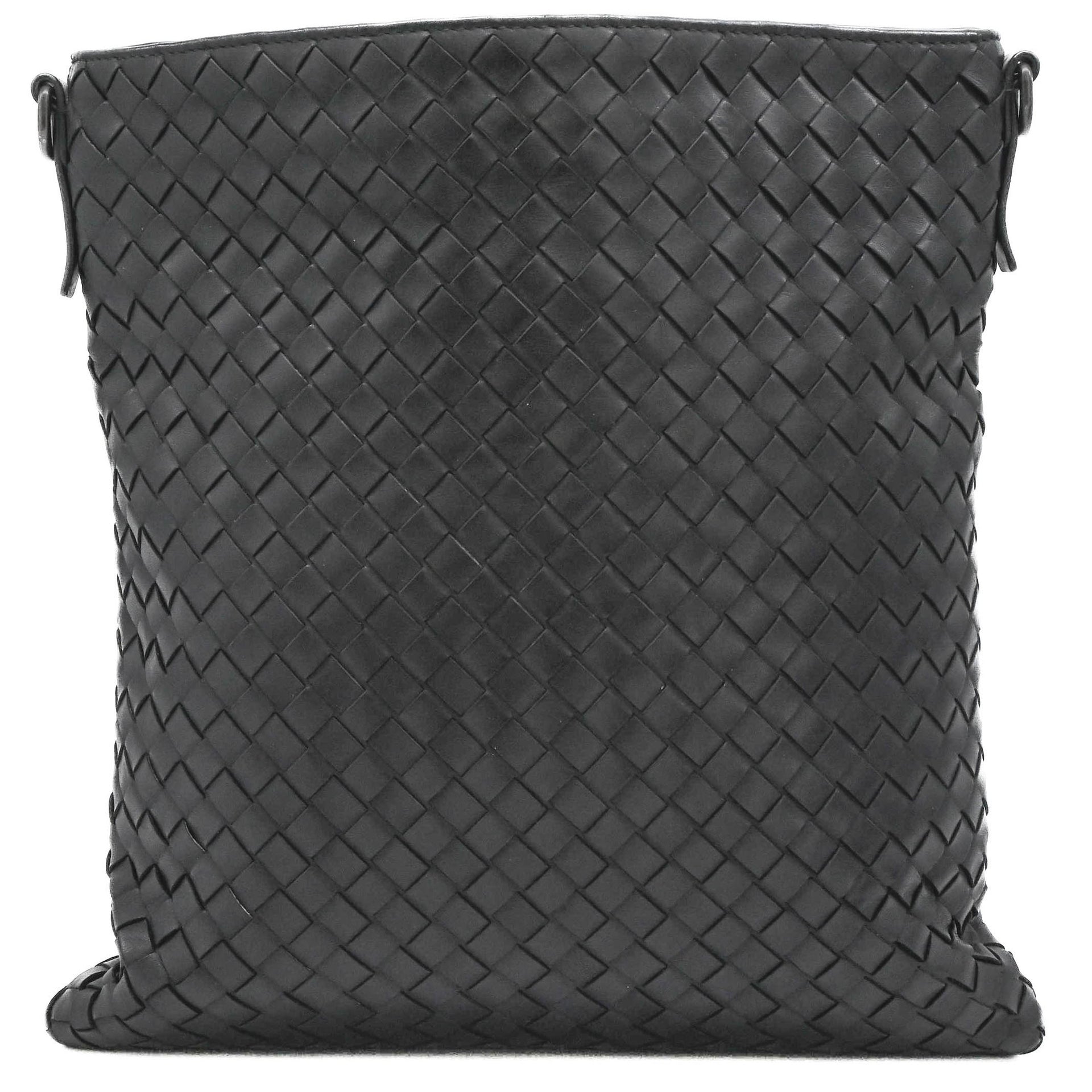 BOTTEGA VENETA Intrecciato Shoulder Bag in Black Leather 276357